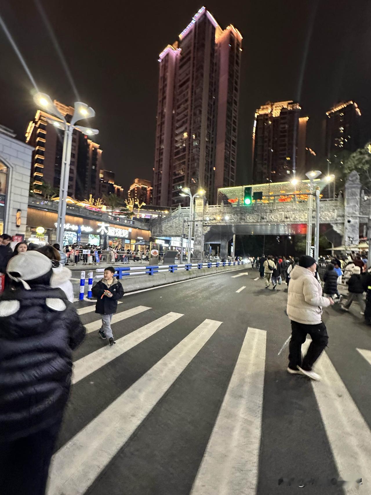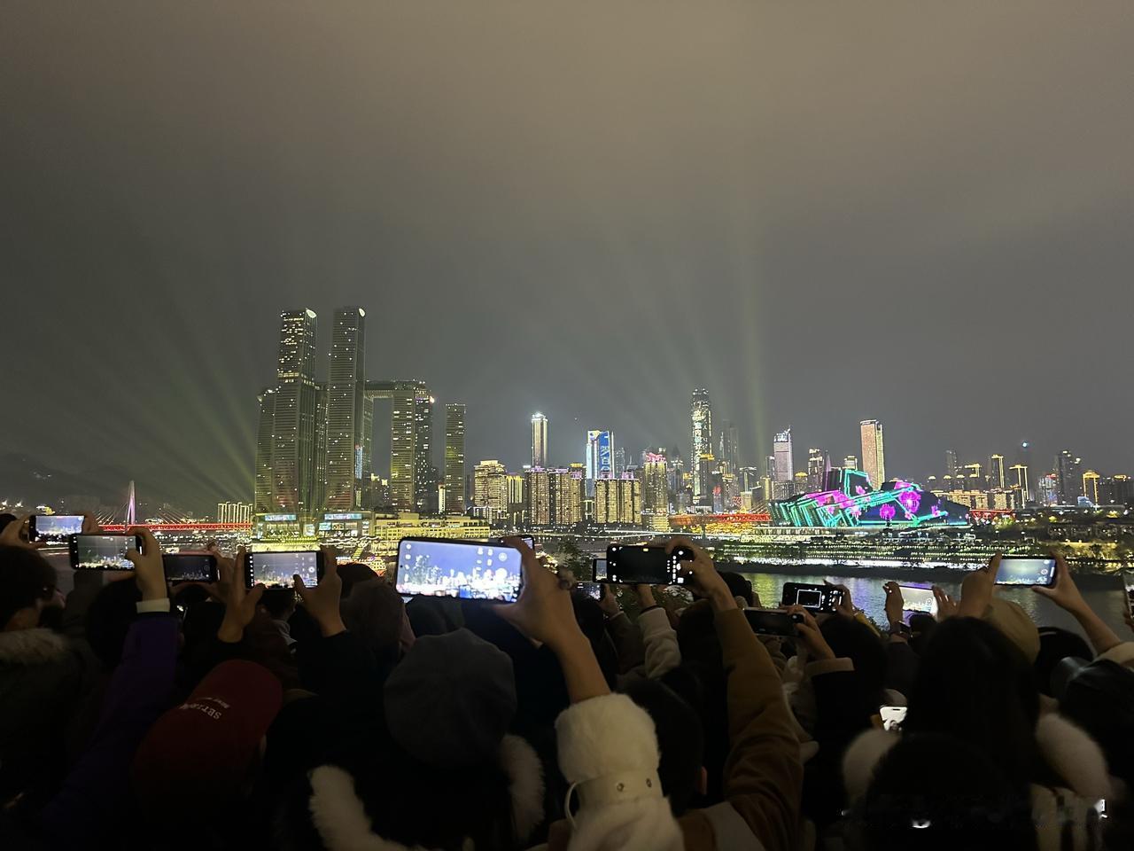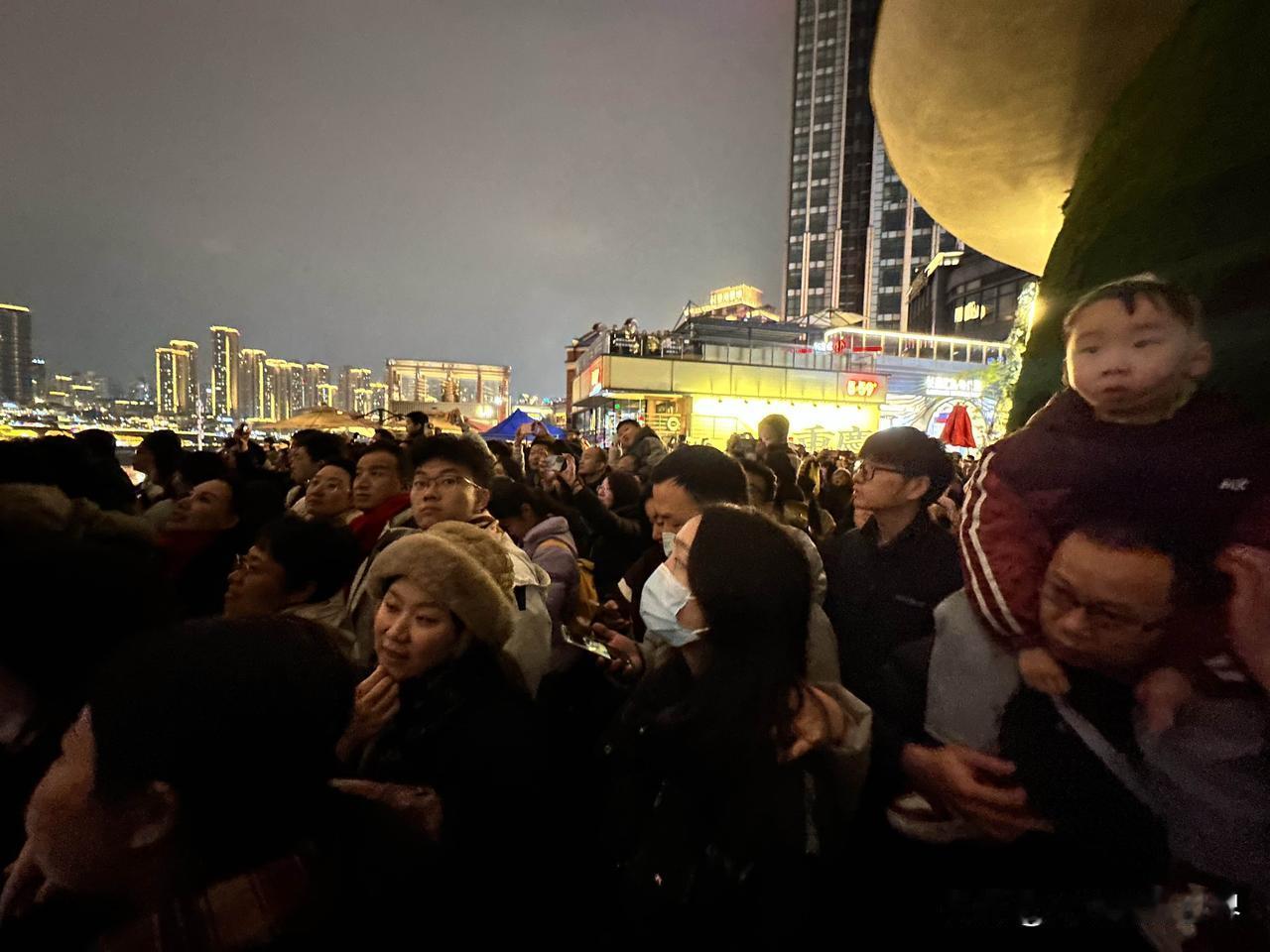暂停了一天的重庆无人机灯光秀表演,今天晚上恢复正常啦!1月2日晚上8点半,大家非常开心,尤其是想起1月1日晚上来看重庆无人机灯光秀的冤种们…… 2026年元旦节,总体来说,1月2日晚上,南滨路,弹子石,长嘉汇,人流量远不如去年618和五一节及春节…… 今天晚上,想要占个位置,还是很容易的,真的很轻松,只要提前30分钟,会有还可以的位置……不必提前两三个小时,还是轻松很多,舒服得很。 哎!跨年夜的解放碑,罚站6个小时,一动不动,不能上厕所,这个是真的太难了! 好吧,重庆无人机灯光秀搭配两江交汇的朝天门夜景,真的非常美丽,尤其是第一次看到的外地游客,感觉非常震撼,冲击力太强了!