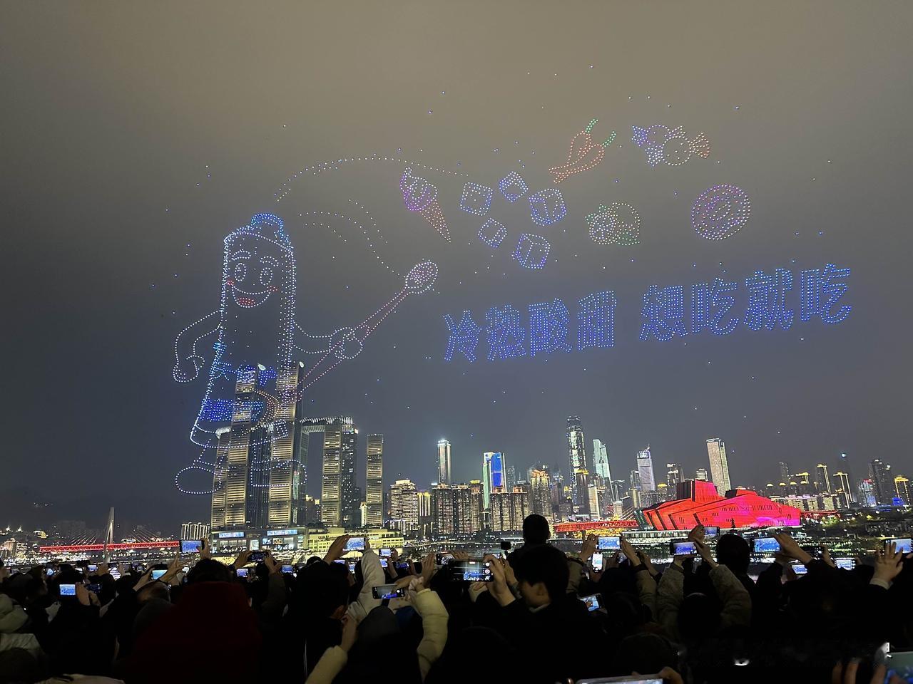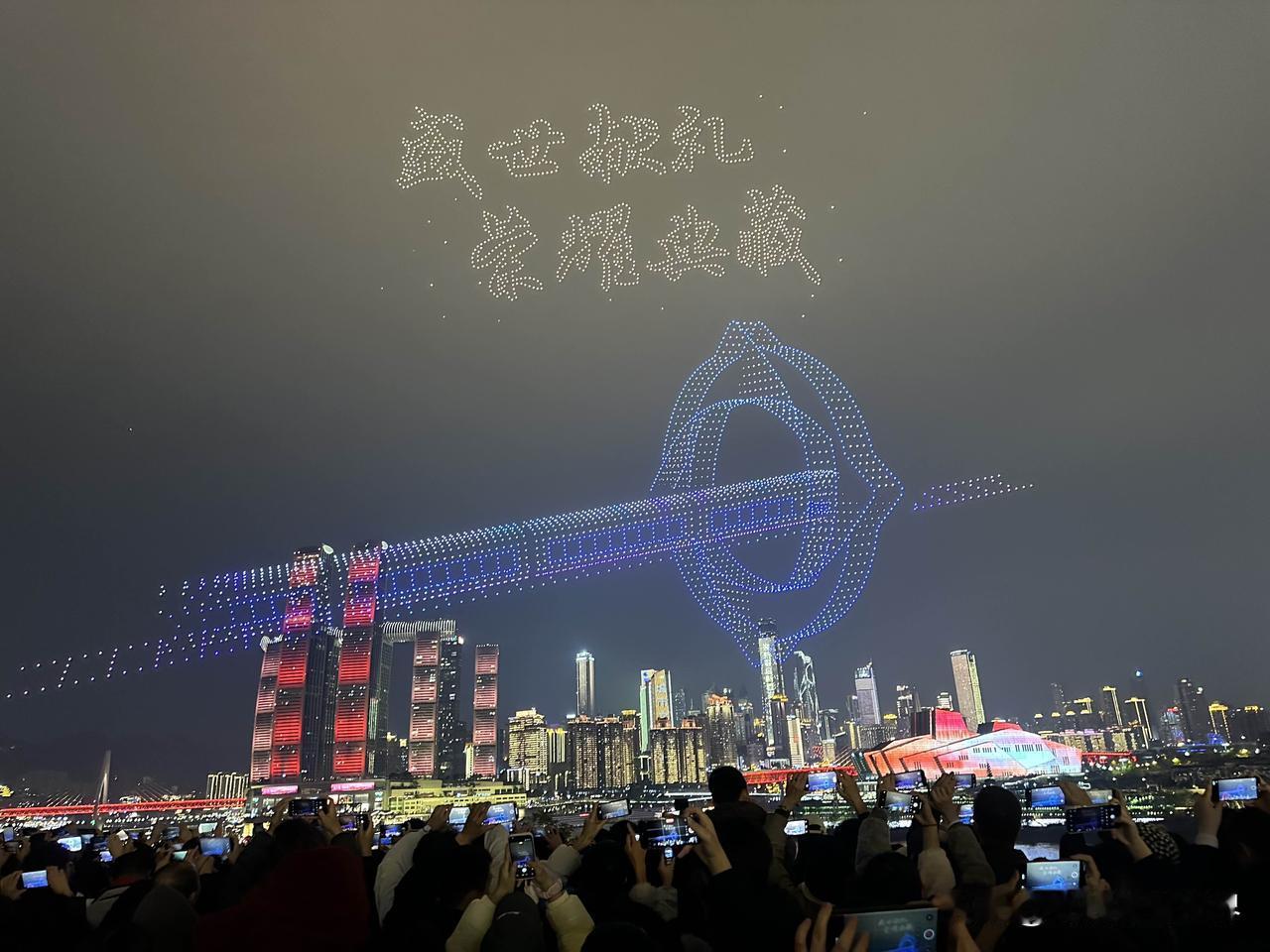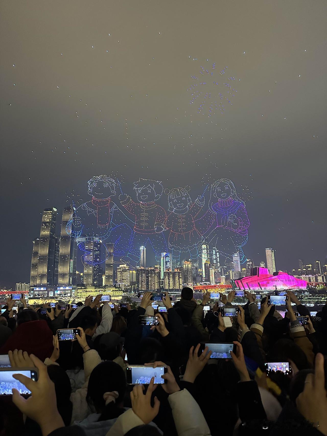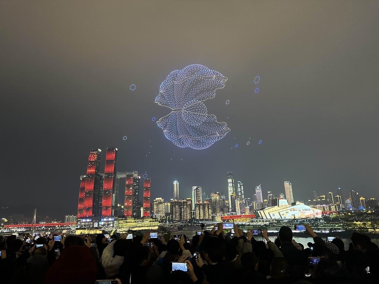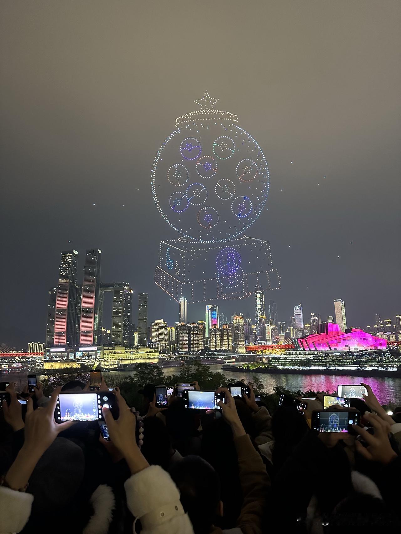 暂停了一天的重庆无人机灯光秀表演,今天晚上恢复正常啦!1月2日晚上8点半,大家非