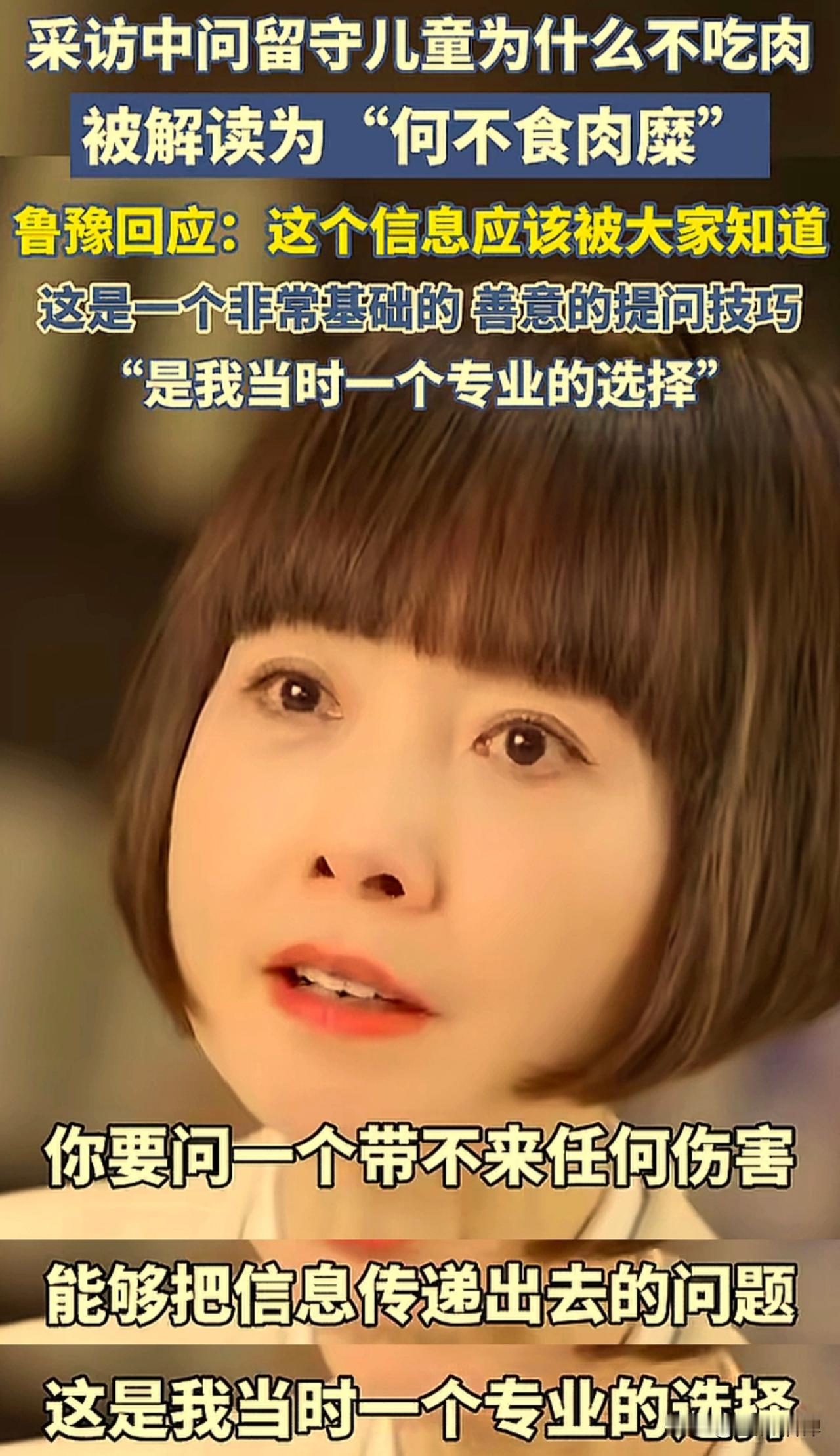 我们都错怪鲁豫了,当年鲁豫在节目中采访留守儿童,问孩子们“为什么不吃肉”一事,她本人近期在一次访谈中做出了首次正面回应。她表示这是一种善意的、专业的提问技巧,目的是为了让观众听到孩子亲口说出困境。 在2008年的一期《鲁豫有约》中,鲁豫采访留守儿童,当孩子提到很少吃肉后,她追问“为什么不吃肉呢?肉很容易坏吗还是什么原因?”,孩子回答“因为现在肉太贵了”。 这段对话被剪辑成片段广泛传播,鲁豫也被部分网友批评为作为主持人脱离现实,贴上了“何不食肉糜”的标签。 时隔多年后,鲁豫首次公开正面解释了当时的提问动机,回应互联网上的恶评和偏见。 她说:“在这样的时代,还有这样一些孩子,你要问一个带不来任何伤害,能够把信息传递出去的问题,这是我当时一个专业的选择”。 网友们说:鲁豫看起来傻傻的提问,其实是提出的引导性的一个问题,知道他们吃不起肉,但又要让观众知道,又要让被采访者没有压力的状态下说出真相。 也有网友说:她还问过国足,“为什么要把球往自己门里踢?是因为近吗?”我就知道她不是等闲之辈了。 鲁豫 鲁豫访谈 主持人鲁豫 鲁豫状态 鲁豫采访 鬼才主持人鲁豫 鬼才主持人鲁豫 鲁豫有约 鲁豫采访经历 鲁豫采访 鲁豫关系 鲁豫对谈
