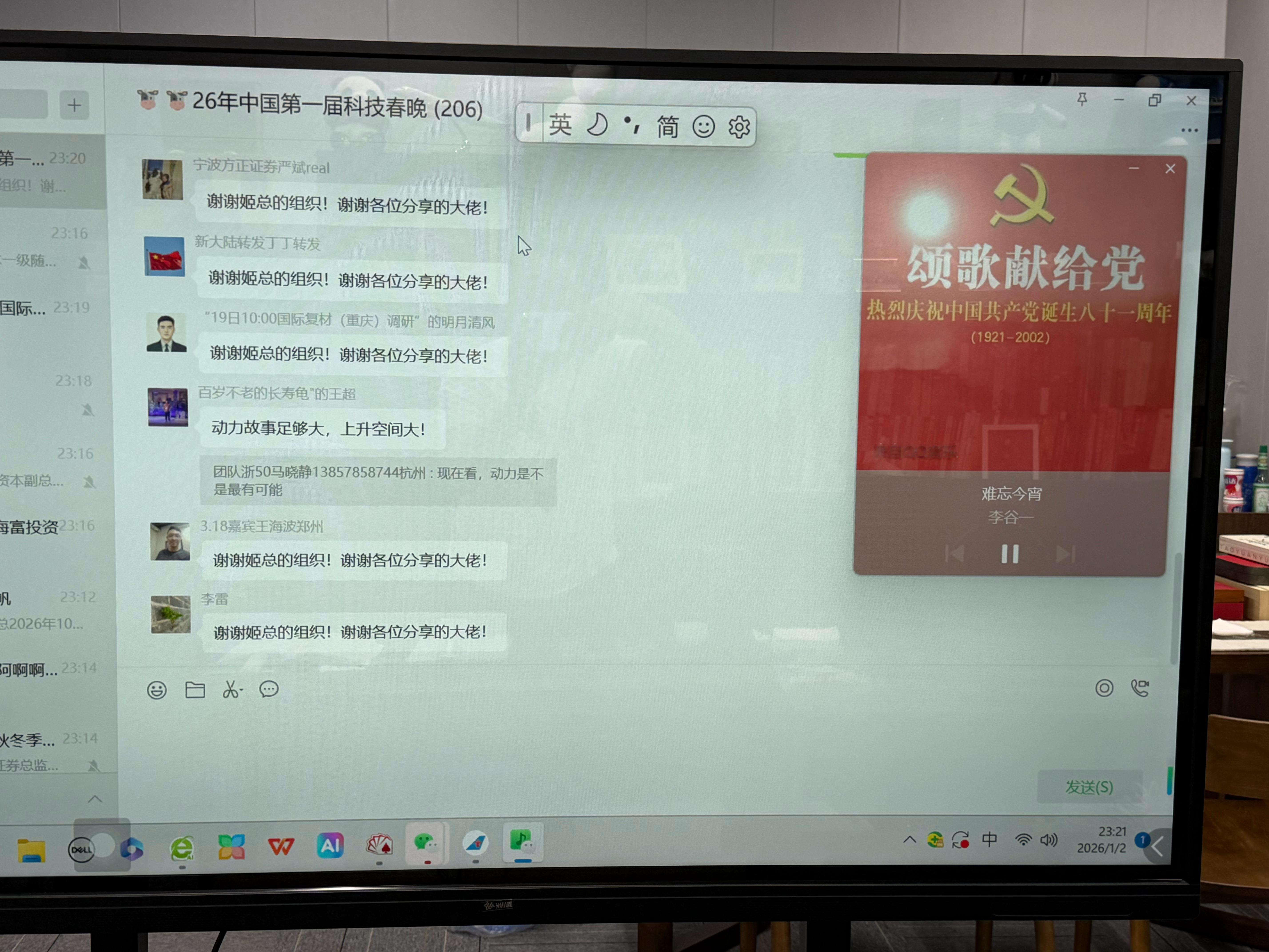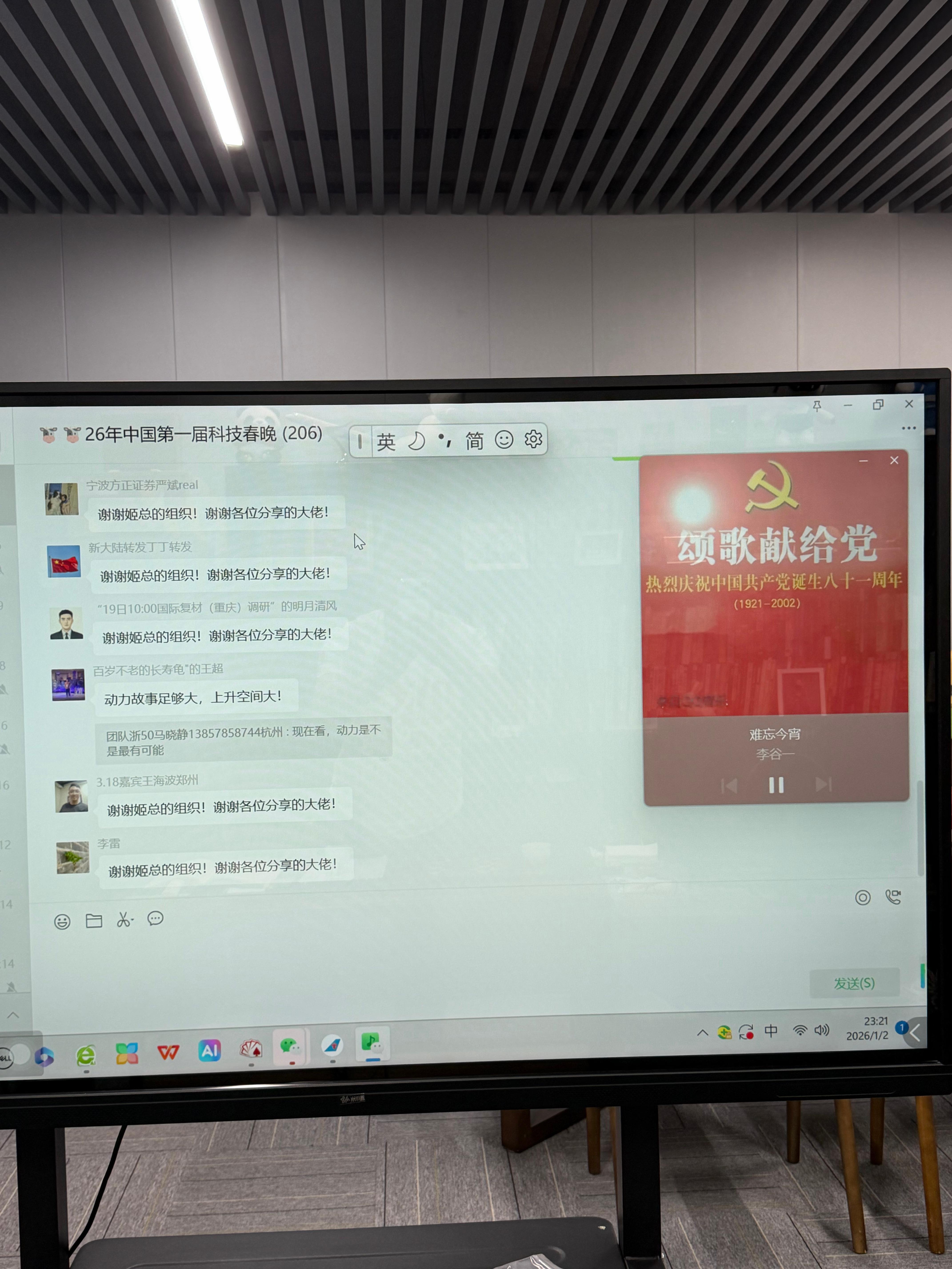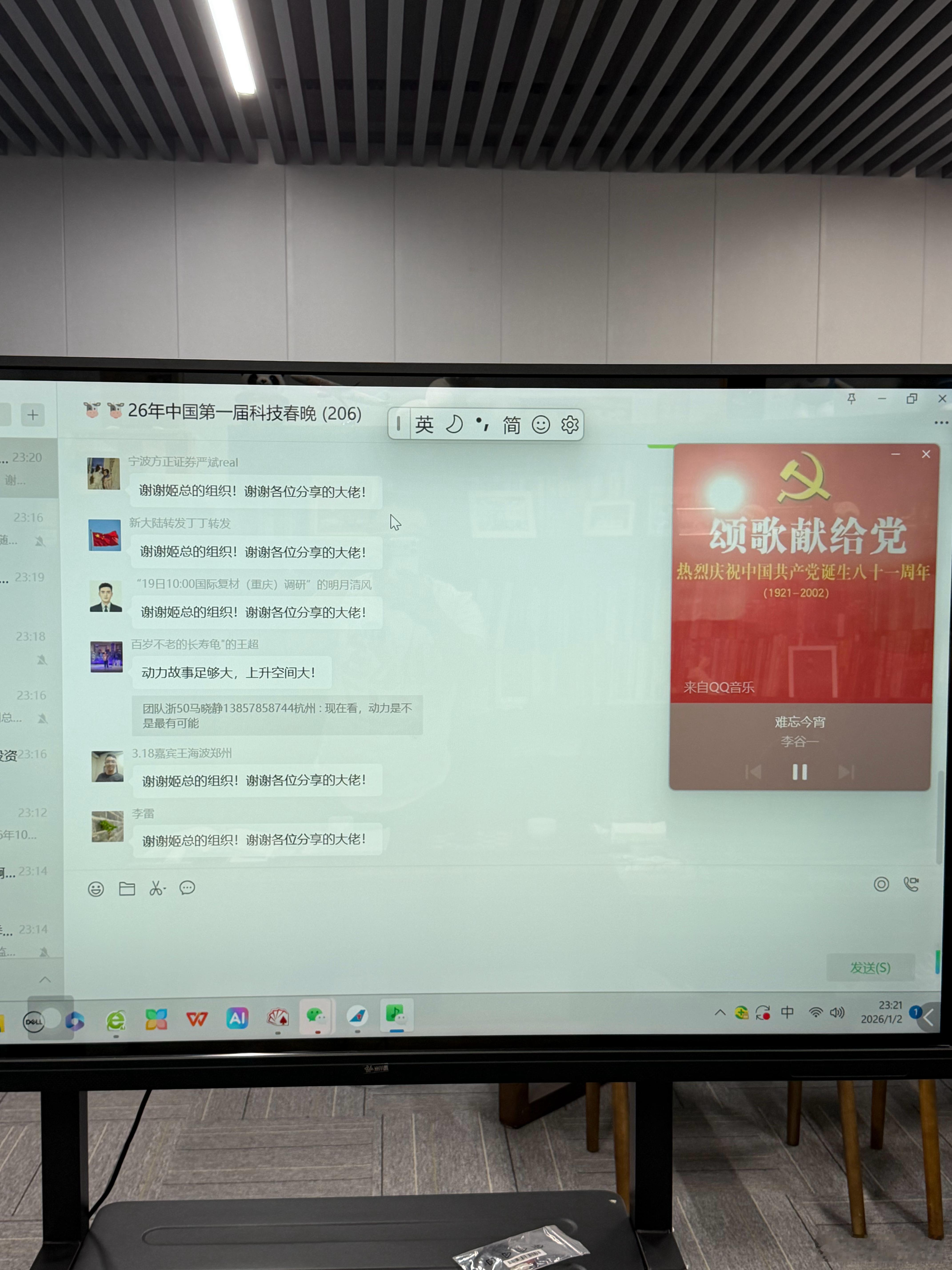 第一届科技春晚就在这样简陋的装备下,开心、激烈、饱满的完成了它的使命,让我们一起拥抱最伟大的2026年的资本市场,今年一定是更加美好的一年![强]