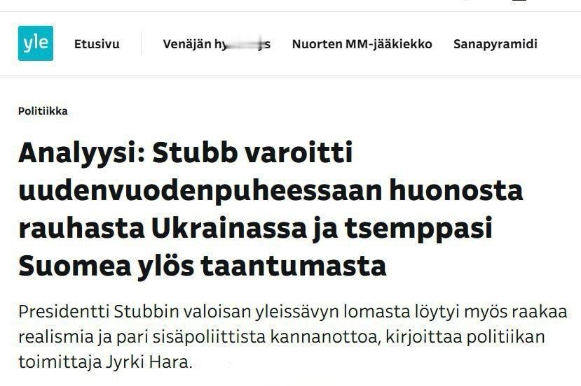 芬兰总统斯图布表示,乌克兰和平协议可能包含不公平条款,但和平始终是一种妥协。