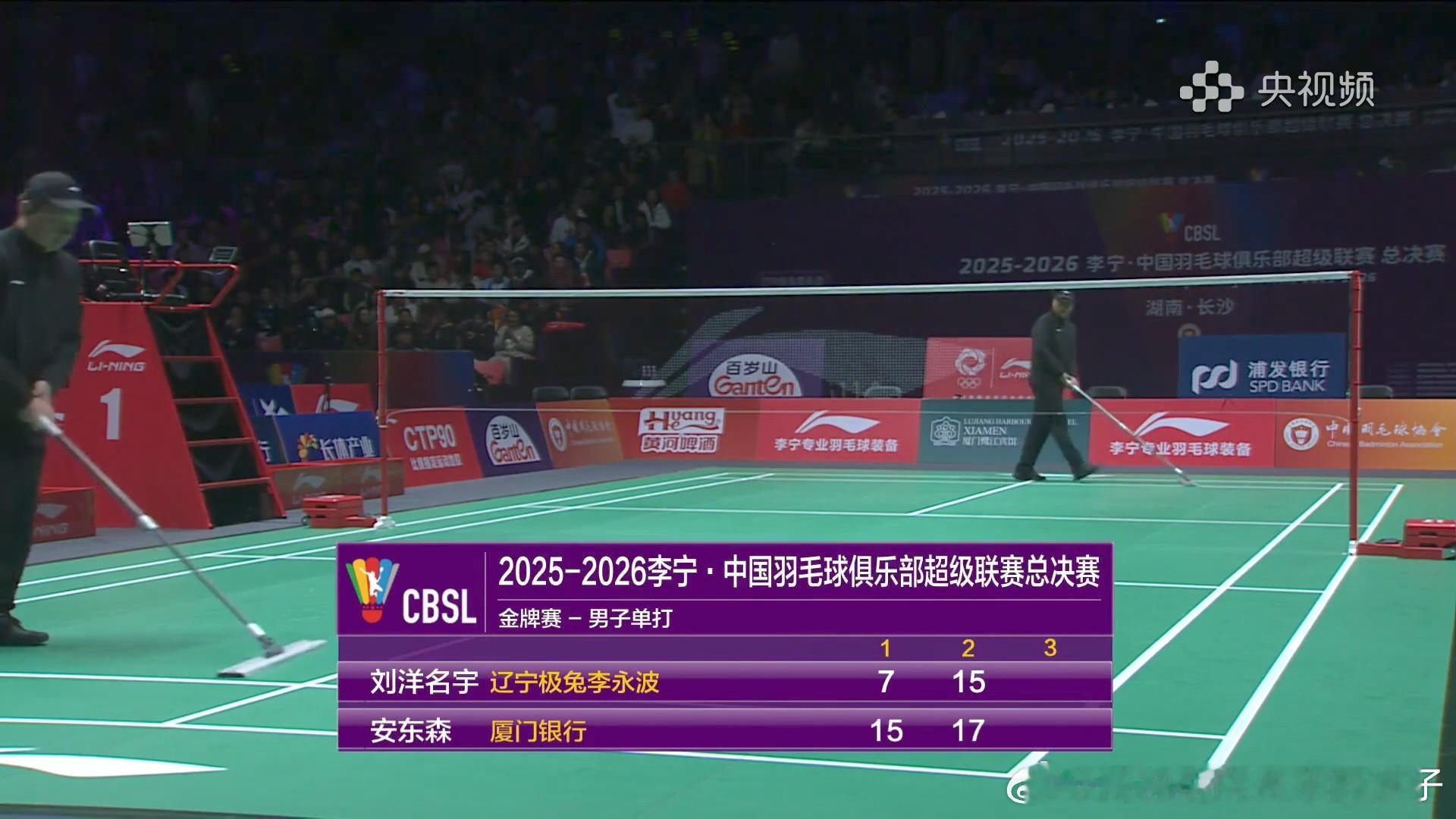 安东森2比0刘洋名宇(7,15)第三盘:冯彦哲黄东萍VS郭新娃刘圣书厦门银行一比一辽宁极兔李永波2025-2026赛季中国羽毛球俱乐部超级联赛决赛