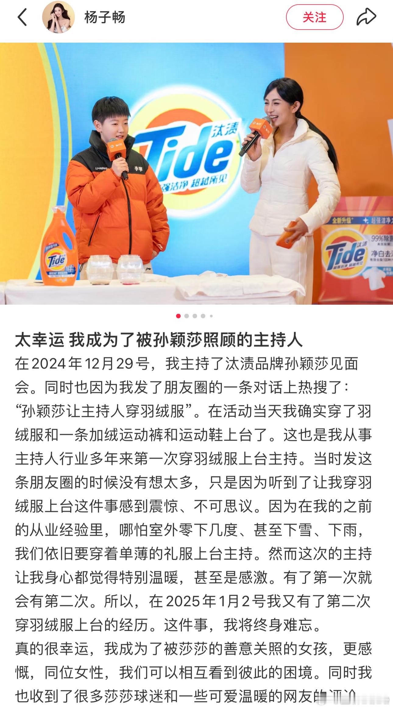 主持人小青:感谢孙颖莎这次主持外场活动,主办方很贴心的说看过小青经常和孙颖莎合作