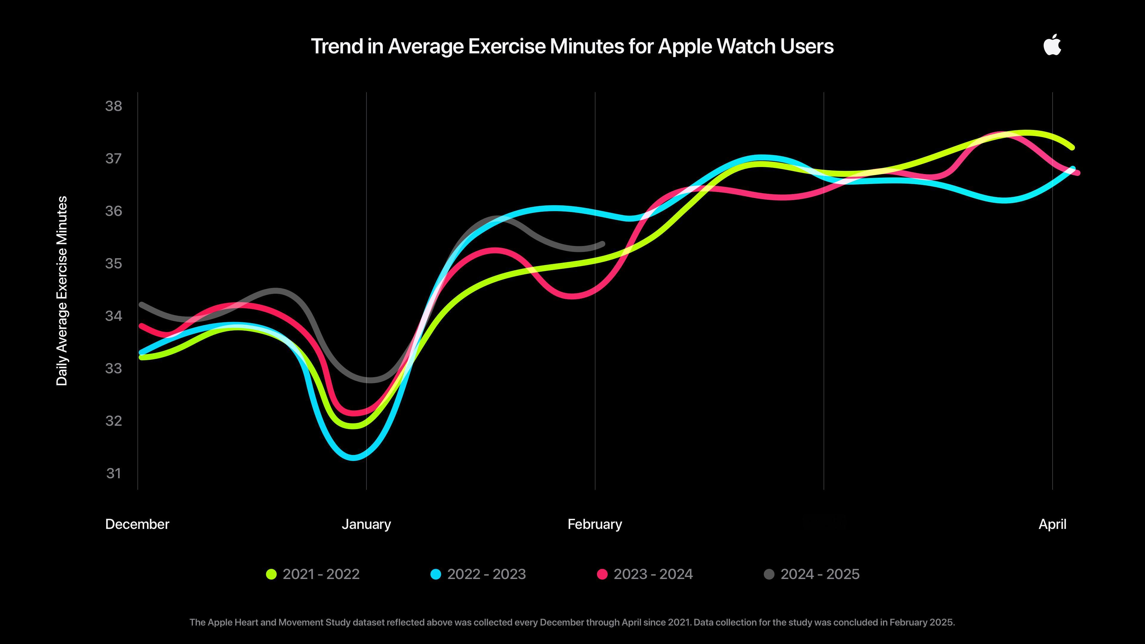【Apple Watch 助用户在新的一年保持活力】作为理想的健身与健康伴侣,Apple Watch 继续支持用户在 2026 年实现与保持目标。Apple Watch 为全球成百上千万用户提供每日健身动力,以及对锻炼、训练与健康的有力洞察。Apple 心脏与运动研究的新数据分析表明,Apple Watch 用户的运动水平在一月持续提升,并在新的一年中稳步延续。Apple Watch 用户还可在一月赢取“迎接新年”限量版奖章,为健身再添动力。很多人会在一月的第二个星期五放弃新年健身志愿,因此这一天又被称为“放弃日”。Apple 心脏与运动研究在超过四年的时间里采集了约 10 万名参与者贡献的数据,对这些数据的一项新分析显示,参与研究的 Apple Watch 用户持续在“放弃日”及之后保持较高运动水平。Apple Watch 用户的平均每日锻炼分钟数会在每年十一月及十二月出现下降,之后会在次年一月迅速上升,且在整个春季保持提升。在一月的前两周内,超过 60% Apple Watch 用户的每日锻炼分钟数相比上年十二月平均值增加逾 10%。许多 Apple Watch 用户不但在“放弃日”保持这种运动水平,且在之后的数月内仍坚持不懈:在锻炼分钟数有所增加的人群中,有近 80% 的人在一月下半月仍保持提升的水平,其中更有 90% 的人会将提升的水平维持到二月和三月。这项分析的研究参与者主动选择分享活动数据,并在多年时间里持续佩戴 Apple Watch。Apple 心脏与运动研究由布莱根妇女医院、美国心脏协会与 Apple 联合开展,目前全美已有超 25 万参与者同意参加。Apple Watch 用户在一月连续七天合上全部三个健身圆环,即可赢取“迎接新年”限量版奖章,活力开启新的一年。作为广受全球用户欢迎的手表,Apple Watch 在全年中持续为用户提供动力与可指导行动的洞察,破除用户与健身和健康信息之间的壁垒。用户还可以:在体能训练 app 中采用经科学验证的定制心率与热量算法跟测多种多样的体能训练。体能训练 app 使用经超 5000 万小时运动数据训练的强大 AI 和 ML 运动模型,在跑步、骑行、游泳、徒步等运动过程中提供进阶运动指标。通过健身圆环挑战和分享保持动力,通过周度总结和趋势关注自身进展,检测训练负荷、有氧适能、心率恢复等关键健身指标;跟踪睡眠状况,获取关于心脏健康的洞察,跟踪月经周期,管理用药,检测环境噪声水平等等。从成套的第三方 app 体验中获益,包括适用于跑者的 Strava 和 Runna;适用于高尔夫球手的 Golfshot 和 18Birdies 等等。