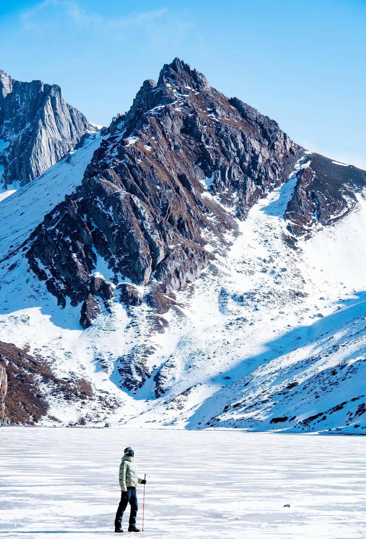 红星岩冰湖🌟结冰啦。单日来回4小时完成,新手户外推荐哦 雪山 旅行推荐官 红星岩海子 登山