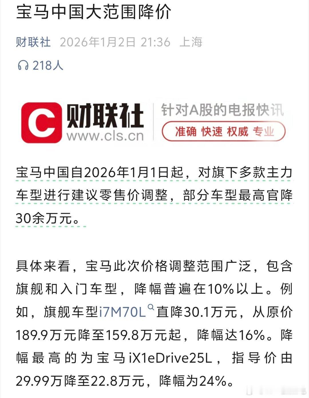 宝马官方调价,最高直降30万降幅最大的ix1有24%大v聊车宝马