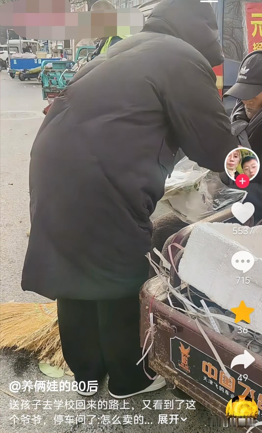 近日,河南郑州,一名女子送孩子上学回家的路上,看到一位80多岁的老爷爷在卖扫帚。女子停下车问,怎么卖的?是不是不能扫码支付?有没有吃饭? 女子在确认之后回家取现金,随便给老爷爷做了一点饭,下了一碗水饺。女子返回之后,看见老爷爷正从布袋里掏出一条饼干。 女子快步走过去说,老爷爷,我给你下了一碗水饺。老爷爷连忙摆手说,不要,没钱给。女子说,不要钱,放心吃吧!最后老爷爷看着女子笑了。 老爷爷的笑既温暖着自己,更温暖了女子。她看着老爷爷把水饺吃得干干净净,临走时掏出20块钱现金,塞进老爷爷兜里,并叮嘱他别丢了。 这事儿听着就暖心,说白了就是普通人之间的小善意,却能暖透人心。 女子看到爷爷的不容易,主动问价、送饺子,没想着图啥;爷爷那句“没钱给”透着朴实的自尊,最后笑着接受的样子,是被这份真诚打动了。 其实不用啥大道理,就是女子递出去的一碗热水饺,不光暖了爷爷的胃,也让他知道有人惦记着;而爷爷的笑,又反过来给女子添了满满的幸福感,这就是善意的双向奔赴啊! 这种日常里的小温暖,比啥都珍贵,也最能让人觉得日子有盼头。(来源:养俩娃的80后)