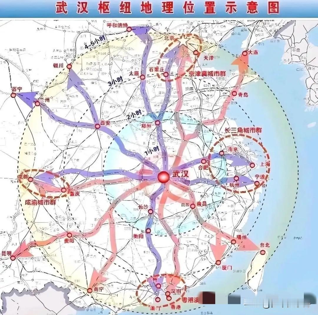 好消息!武汉,这座“九省通衢”的特大城市,正加速编织一张愈加密集成型的高铁网络。就在最近,沪渝蓉高速铁路武汉至宜昌段(武宜高铁)正式开通运营,它以每小时350公里的设计时速将武汉与“三峡门户”宜昌之间的旅行时间大幅缩短至最快仅69分钟,不仅便利了沿线居民出行,更深层次推动了鄂西地区与武汉城市圈的联动发展。 然而,这只是武汉高铁枢纽大棋局的其中一步。紧随其后,两条新的高铁线路已提上建设日程,即将进入实质性开工阶段。 一、武汉枢纽直通线 旨在优化枢纽内列车运行效率的武汉枢纽直通线,它将有效疏解现有线路压力,提升跨线运输能力和运行灵活性。 二、阜阳至黄冈高铁(阜黄高铁) 阜阳至黄冈高铁(阜黄高铁) 国家战略级干线的重要组成部分,该线路是国家级“八纵八横”高铁网中“京港(台)通道”的关键构成部分,计划在近期开工建设。尤为重要的是,它将在武汉市新洲区设立车站,并与已经建成通车的黄冈至黄梅高铁(黄黄高铁)实现衔接。 据悉,这条阜黄高铁的意义非同小可。它将成为武汉打通“京九西通道”的核心引擎。通过它,武汉北上可经阜阳接入京港(台)主通道,更便捷地连接中原城市群并直通北京;南下则可借助黄黄高铁及既有网络,快速抵达粤港澳大湾区的广州、深圳等地。这意味着,武汉在已有的京广高铁大动脉之外,成功开辟出一条纵贯南北的第二条高速大通道,其全国性的交通辐射能力与中部枢纽地位得到质的飞跃。 武汉的雄心不止于此。立足于当下“七向”高铁线路的贯通格局,其宏伟蓝图是构建一个 “超米字型” 的12方向放射状高铁枢纽。这一宏大的交通网络骨架清晰: 纵向——拥有强大的京广通道与新兴的京九西通道。 横向——则由新建的沪渝蓉高铁(沿江高铁)与既有的沪汉蓉快速通道共同支撑。 再加上斜向——延伸的福银通道(福州至银川)和胶贵通道(胶东半岛至贵阳)等,一个连接八方、通达全国的高铁枢纽网络正在从蓝图变为现实。 未来,随着各个方向高铁线路的不断建设和完善,武汉这座屹立在中国经济地理“天元”之位的中心城市,其交通优势将进一步转化为发展胜势,在国家综合立体交通网中扮演更为核心的枢纽角色,强力驱动长江中游城市群乃至更大区域的共同发展。
