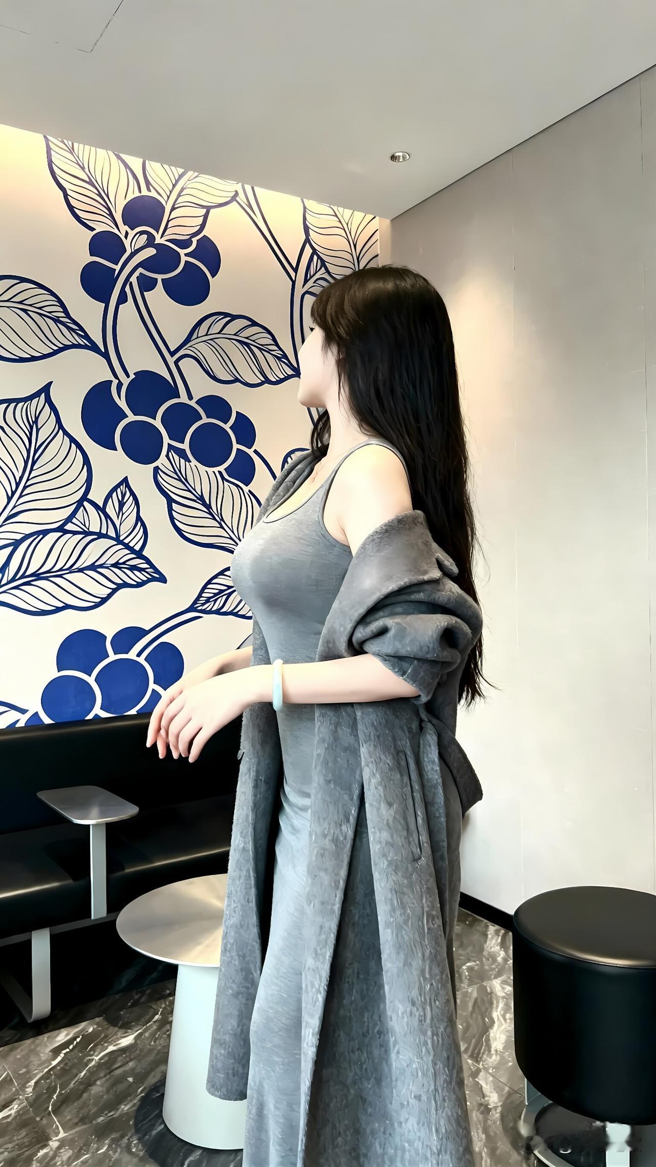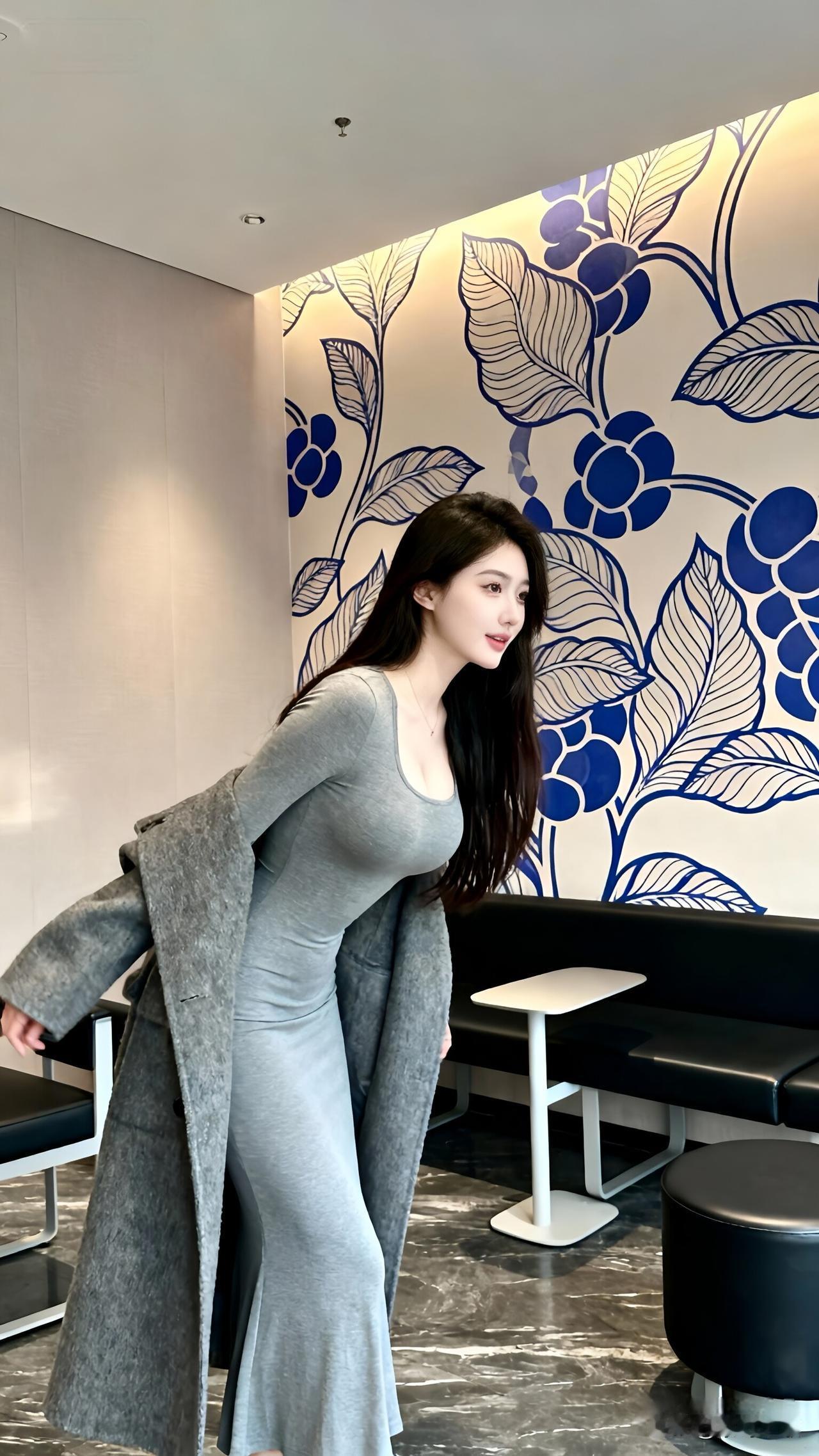 优雅气质穿搭,灰色连衣裙搭配长外套,尽显时尚魅力!