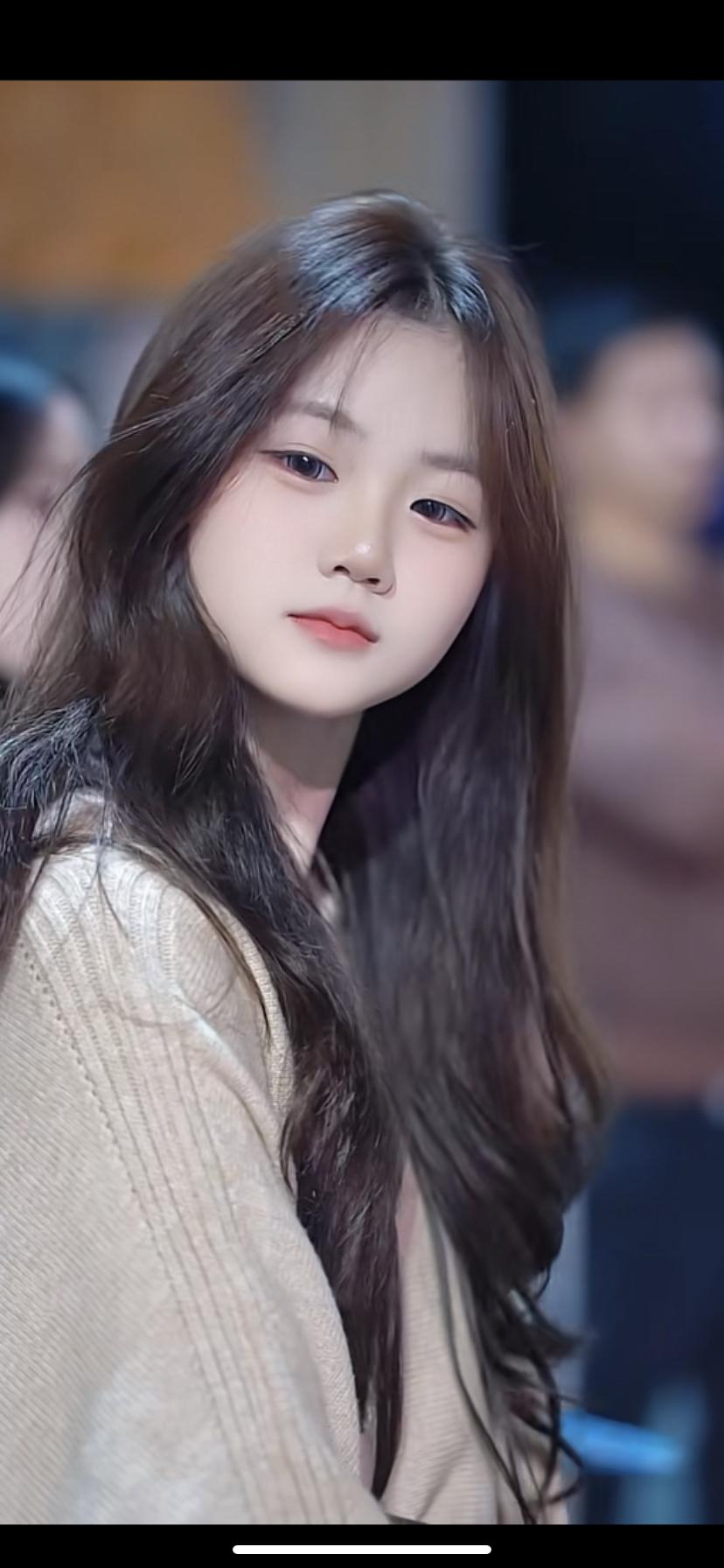 温柔甜美的少女,长发飘飘,眼神清澈动人。