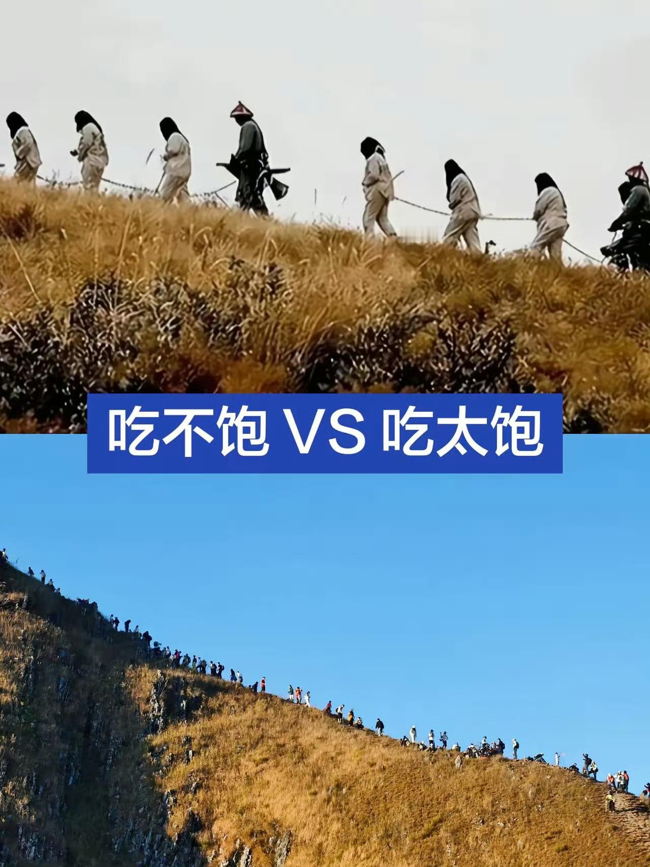 一个吃不饱,一个吃得太饱!总之,一代人有一代人吃的苦。