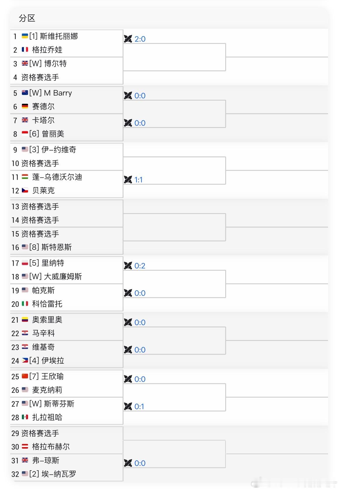 🔵WTA250奥克兰女单正赛签表【7】🇨🇳王欣瑜vs🇺🇸麦克纳莉网球2