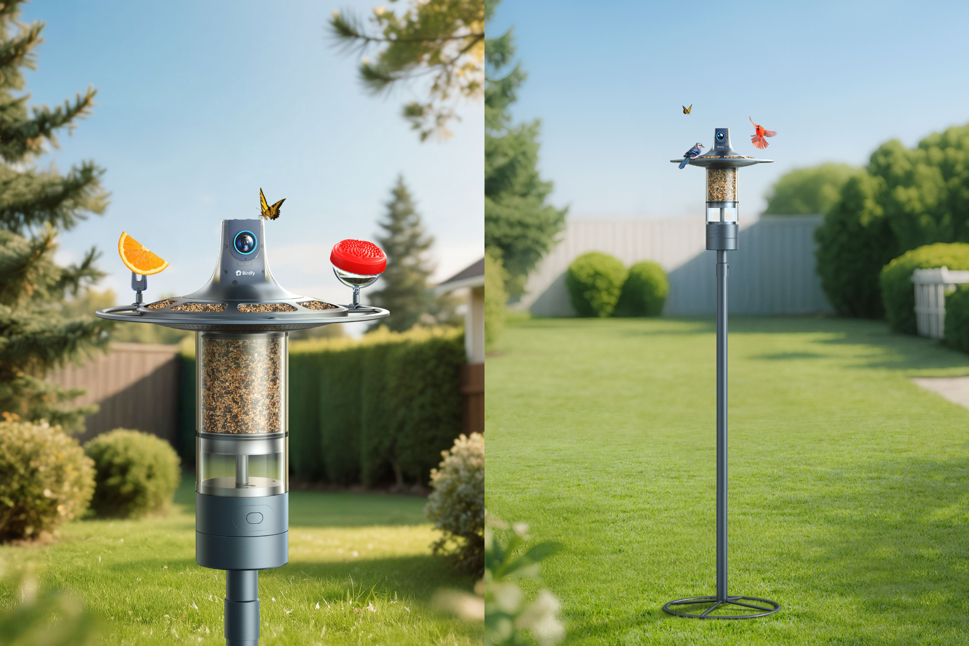【CES 2026:Birdfy 推出蜂鸟喂食器和 360 度全景喂食器】Birdfy 今天推出了两款新产品,分别是 Birdfy Feeder Vista 和 Birdfy Hum Bloom,这两款新产品加入了该公司专为观鸟设计的带摄像头配件系列。Birdfy Feeder Vista 是一款 360 度智能喂鸟器,配备两颗摄像头,可拍摄 1400 万像素全景照片并录制 6K 高清视频。Vista 采用杆式摄像头设计,并配备自下而上的喂食系统。它内置气泵,将鸟食输送到密封的底部容器,再由气泵输送到喂食盘,因此没有会遮挡摄像头视野的食槽。用户可在 360 度全景视角和更传统的广角视角之间切换。与其他 Birdfy 喂食器一样,这款喂食器内置 AI,能够识别前来觅食的鸟类,但 Vista 的亮点在于其 120 帧/秒的慢动作视频,用于记录鸟类的降落和飞行。摄像头采用重量传感器而非运动传感器触发,因此不会错过任何一次鸟类光顾。Vista 使用基于 LLM 的 AI 技术,通过理解上下文和生物学原理来更准确地识别鸟类。Birdfy 表示,这款喂食器配备的气泵喂食系统能够控制喂食速度和份量,从而减少浪费,并培养更健康的喂食习惯。鸟食储存在抗菌鸟食容器中,最大限度地减少污染,并减少补充次数。喂食器采用高强度尼龙材质,并以玻璃纤维增强,还配备卡扣式模块化系统,可添加各种配件,吸引更多种类的鸟类。除了 Birdfy Feeder Vista 外,Birdfy 还推出了 Birdfy Hum Bloom,这是一款专为蜂鸟设计的喂食器。这款喂食器能够拍摄 800 万像素的照片或 120 帧/秒的慢动作视频,而且与 Vista 一样,Hum Bloom 的设计不会遮挡摄像头的视野。花朵形状的吸蜜球以鸟类熟悉的形状输送花蜜,图片中看不到喂食盘。内置传感器可以追踪花蜜量,并在需要补充时发送通知。此外,还配备了防蚁槽和用于持续供电的太阳能电池板。Birdfy 表示,这款喂食器使用专门对蜂鸟训练的 AI 模型,这一特点使其与其他配备摄像头的蜂鸟喂食器区别开来。
