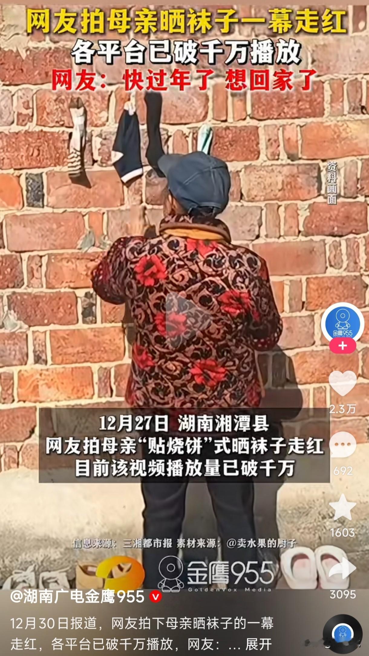 湖南湘潭一网友拍下母亲在墙上贴烧饼式晒袜子的一幕走红,各平台已破千万播放量,这袜子贴到墙上它为什么不掉呢? 第一次见到在墙上贴烧饼式晒袜子的方法,这到底是什么原理,它为什么不往下掉呢?话说这墙是红砖砌的,但砖又是泥土做的,这袜子是塑料做的,塑料和泥土压根八竿子打不着不是吗?既不是同性相吸,也不是异性相斥,这种贴在墙上不掉真是想不明白是什么原因? 小时候我们都在这种墙上晒牛粪,把牛粪糊在墙上面,干了的时候在用铲子给铲下来,那可是冬天过冬烧炕最好的东西,既耐烧保暖效果又好,我以为墙上只能晒牛粪,原来墙上还能晒袜子!袜子晒法
