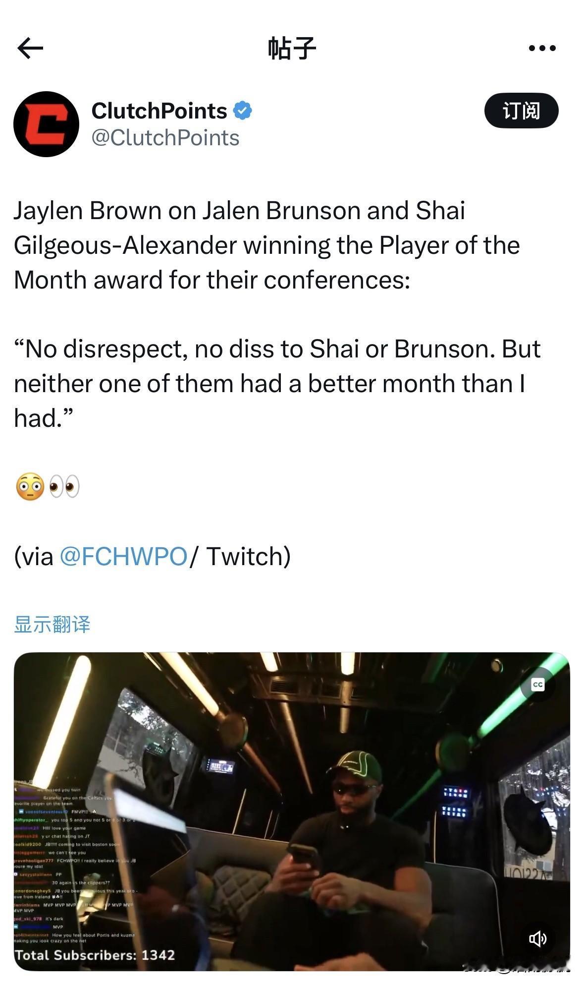 布朗谈布伦森和亚历山大分别获得联盟东部和西部的月度最佳球员奖:“我无意冒犯亚历山大或布伦森,但他们俩这个月的表现都不如我。” 同时布朗在社媒上转发联盟东西部月度最佳球员消息时也表示了不满,毕竟布朗在2025年12月份表现也非常出色,球队战绩也不算差,质疑也很正常。