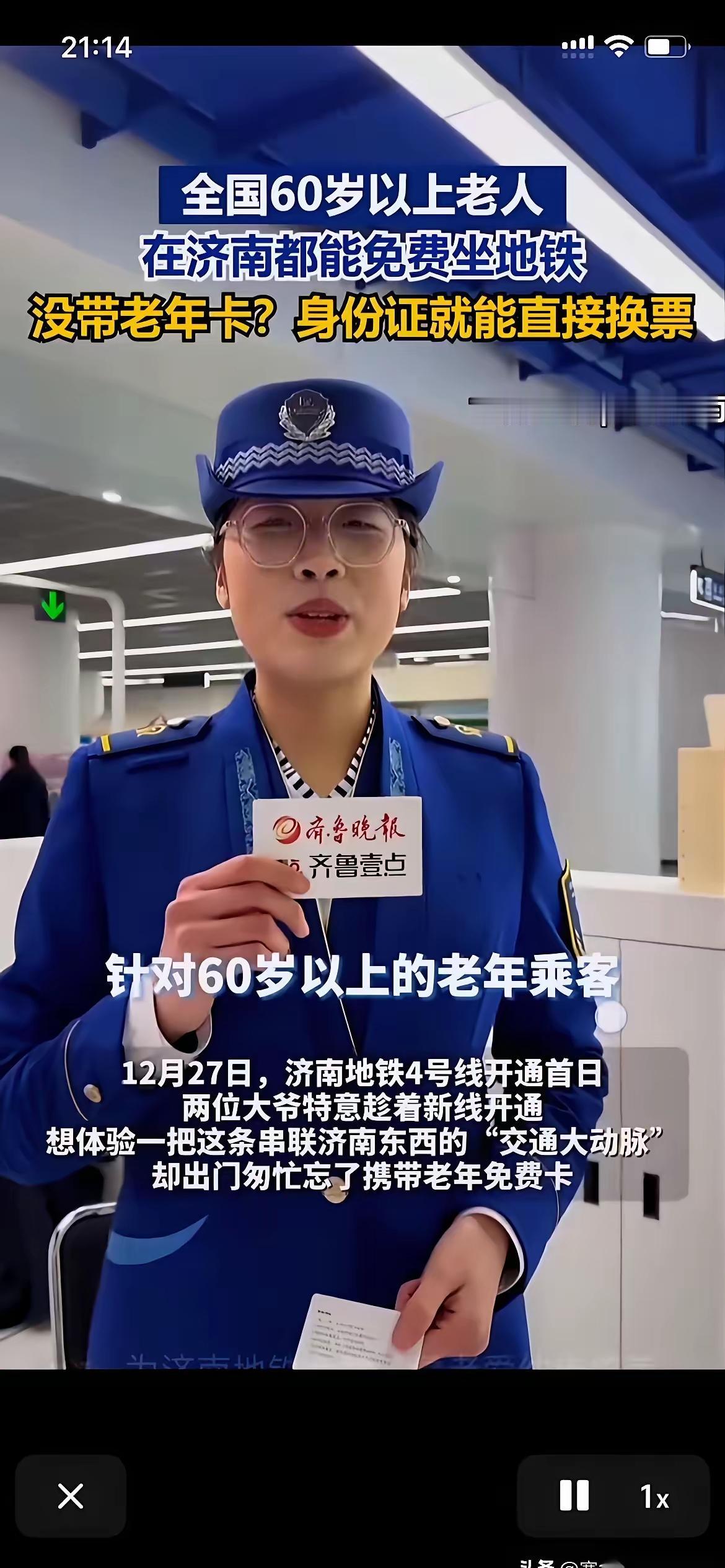 真正的惠民操作,在济南所有60岁以上的老人,不看户籍,不分省份,只要你到了济南的地界,公交、地铁,随便坐,全免费。 济南能这样做,不仅仅是好客山东的体现,更是济南的经济实力,也是对所有来济南的人最好的体贴与照顾。 济南的便民措施,真正的做到了实处,真好!60岁便民政策 老年人出行优惠 济南养老 济南高速免费 济南七旬老人 济南公交优惠 济南公交新规