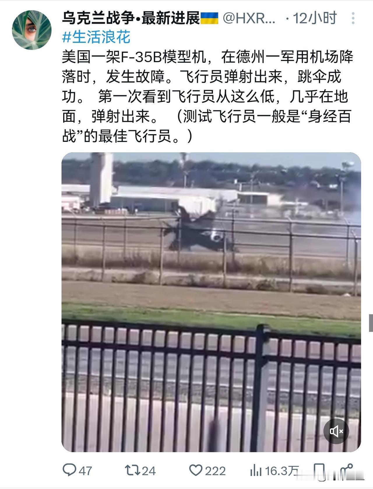这些反贼们真是张口就来,关键还有人信 F35着陆失败,这货说什么是模型机测试弹射装置[笑哭][笑哭][笑哭]