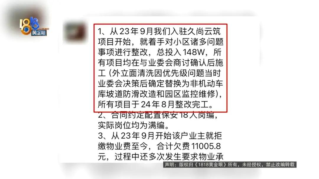 扔的垃圾被物业扔回家门口,业主感觉被“侮辱”,物业公司:业主长期拒缴物业费。 根据您提供的报道内容,杭州市民陈先生与物业公司之间的矛盾涉及多方面的问题,主要包括物业服务质量、物业费的缴纳、垃圾管理以及双方的沟通与法律程序。以下是对事件的整理与分析: 一、事件背景 陈先生住在杭州临平区的久尚云筑小区,因对物业公司提供的服务不满,拒绝缴纳物业费,累计逾一万多元。 物业公司于2023年9月开始对小区外立面进行整改,总投入148万元。 陈先生两年前曾表示对物业服务不满,尤其是外立面清洗不达标,窗户脏污。 近日,陈先生在扔垃圾时被物业工作人员拦下,之后发现垃圾被拎回家中,且物业将其他业主的垃圾堆放在他家门口。 二、事件经过 2025年12月26日,陈先生在扔垃圾时被保安提醒缴物业费,随后发现垃圾被物业拎回,报警调解。 2025年12月27日,物业将陈先生家门口堆放他人垃圾的情况公开,引发业主不满。 陈先生及其妻子认为物业行为是挑衅、侮辱,强调愿意走司法程序解决物业费问题。 物业公司辩称已投入大量资金进行整改,并指出部分业主有“白嫖”物业服务的言论,且有人对物业工作人员进行人身攻击。 物业表示已对相关工作人员进行批评教育,并愿意配合部门工作,沟通解决问题。 三、问题分析 物业服务与收费争议 陈先生因不满物业服务质量(如外立面清洗不达标)而拒缴物业费,双方在服务内容与费用认知上存在分歧。 垃圾管理与执法 物业拎回垃圾的行为存在争议,是否属于合理管理或不当行为,有待法律界定。 陈先生的行为是否构成拒交物业费的合法依据,以及物业的强制行为是否合理,是焦点。 物业与业主关系 双方存在沟通障碍,物业部分言行被业主视为挑衅和侮辱,影响双方关系。 法律程序 陈先生表示愿意走司法程序,物业提及已准备法律措施,未来可能通过法律途径解决争端。 四、建议与展望 双方应加强沟通,寻求调解途径,避免矛盾升级。 物业应依法依规处理业主的物业费争议,避免激化矛盾。 相关部门应介入调解,确保业主权益和物业管理的合理性。 公众关注此事件,也反映出物业管理中业主权益保障与服务质量提升的重要性。 总结: 本事件反映出物业服务、收费、管理等多方面的矛盾,建议双方理性沟通,依法依规解决争议,维护和谐社区环境。