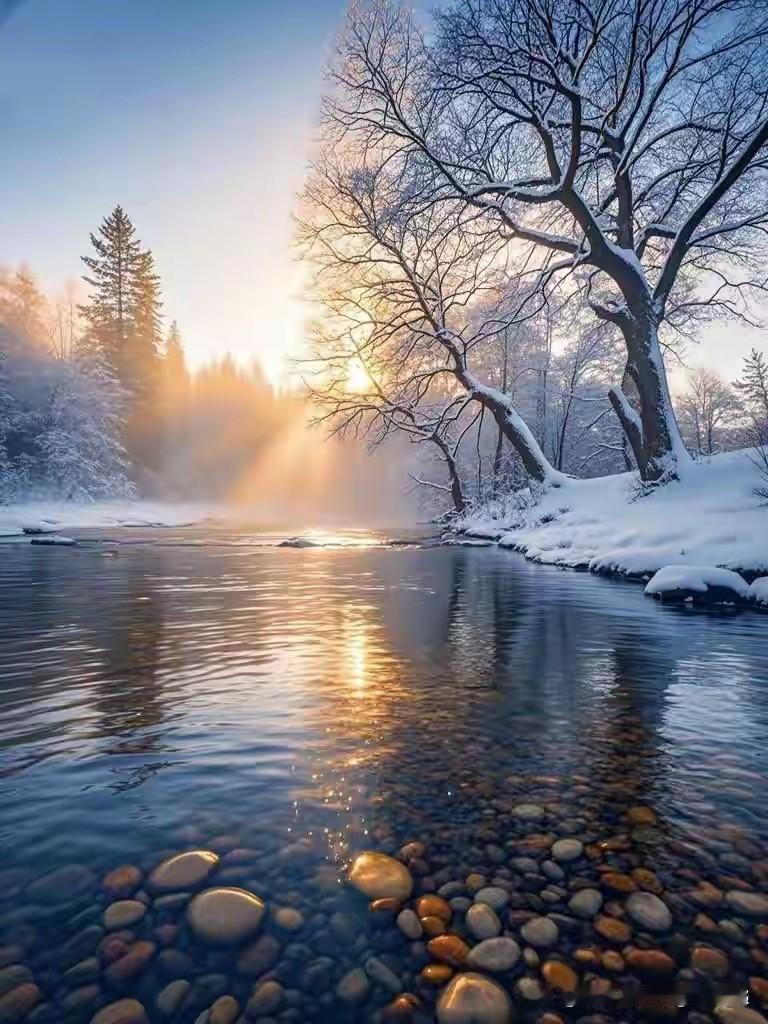 数九寒天, 泉水潺潺。 烟气渺渺, 云雾之间。