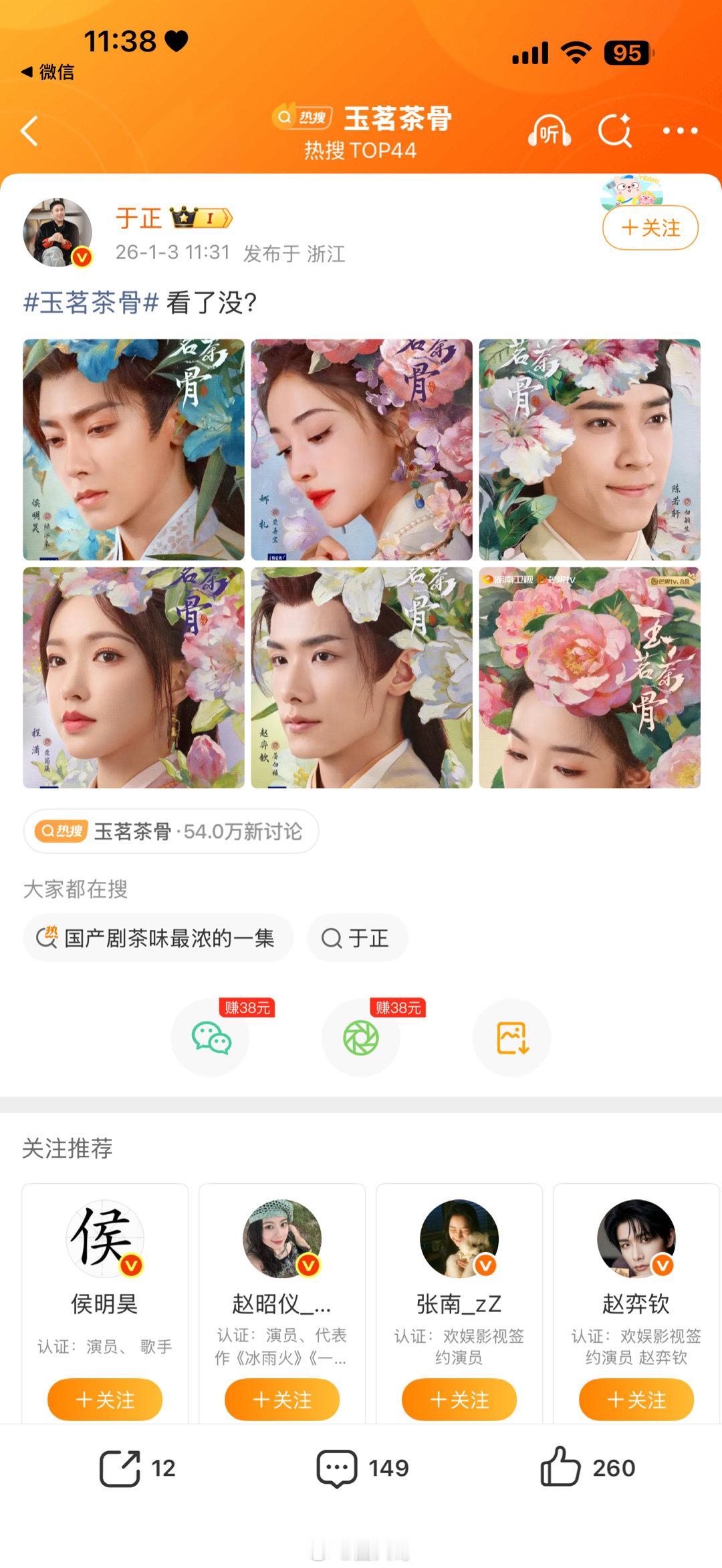 于正问看了没 啊这。又要乱成一锅粥了吧,没想到内娱男艺人的瓜,居然又引到了许凯身上啊,许荔莎怼赵晴粉丝,于正也出来营业了,发了《玉茗茶骨》的剧照后,问看了没,网友调侃于正这是问看的啥呐,许姐又要贴脸开大了嘛~于正和许荔莎同时营业