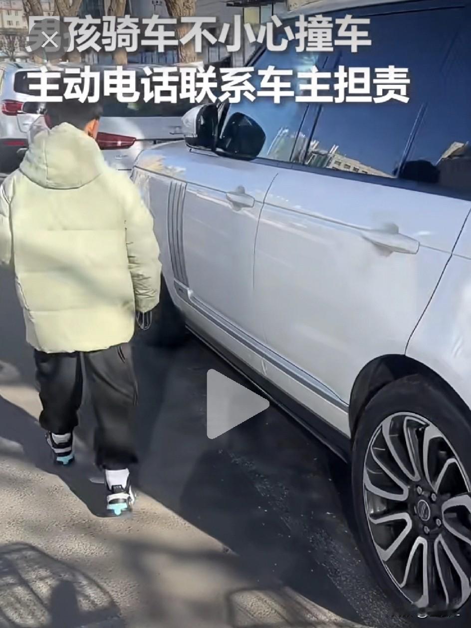 男孩骑自行车撞上百万路虎!没跑没赖主动担责。反把车主整感动了:不用赔!网友:男孩有担当,车主有格局! 跨年夜,内蒙古一小男孩骑车“Duang”一声怼上一辆路虎,车漆刮花一片。孩子没溜没躲,反倒守在冷风里,哆嗦着打电话给车主:“叔叔……我闯祸了……” 车主赶来时,小男孩眼泪直打转,指着划痕小声认错:“是我不小心,刹车坏了……”朋友在旁边帮腔:“车闸捏不住啊叔!” 车主一看,车前脸刮得挺明显,修一下少说得两三千。可低头瞅瞅孩子冻红的脸,又心软了:“没事,我有保险!你没摔着就行。” 小男孩一听不用赔,眼泪更憋不住了——这回是吓的,也是暖的。 最后车主拍拍他肩膀:“以后骑车小心点!新年快乐啊!” 甚至在两个小男孩说谢谢叔叔时,还暖心的开玩笑,“不要叫叔叔,叫哥!”男孩子们笑着说“谢谢哥哥”,紧张、自责的情绪一下子舒缓了很多很多。 网友辣评: “孩子比某些撞了就跑的成年人强一万倍!” “车主格局打开了,这教育比赔3000块值钱。” “建议路虎厂商来找这爷俩拍广告:车硬,人心更暖。” “孩子品德好,车主也有大爱,好人一生平安。” “人家开路虎是有原因的,大格局人!” 一场意外,试出了孩子的担当,也试出了大人的温度。为诚实点赞,也为善意鼓掌! 遇到这种事,你会怎么办?来评论区聊聊! 素材来源:人民日报,侵联删!
