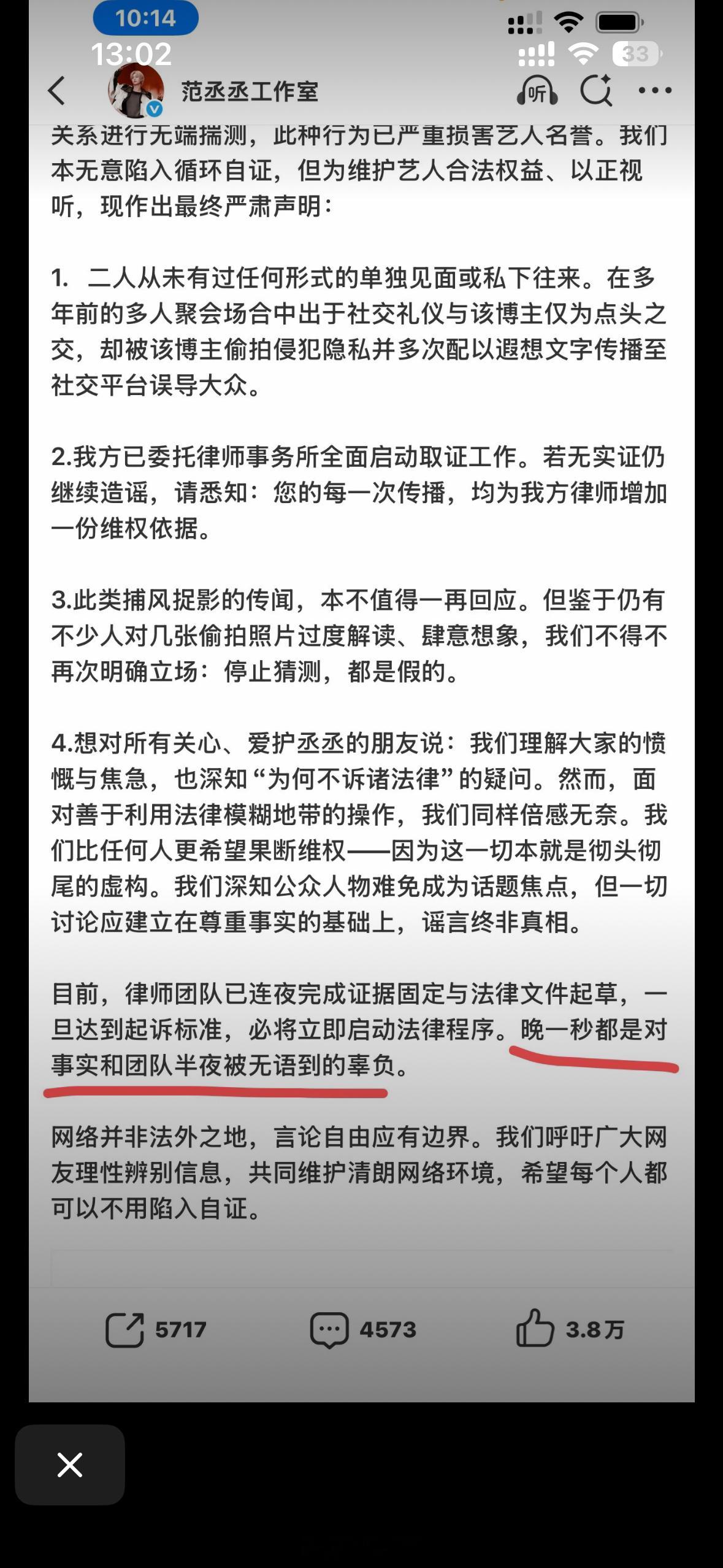 因为范丞丞本人凌晨三点不睡觉吗,哈哈哈哈看了一下所有的声明里只有范丞丞说的清清楚楚,明明白白很可信,其他的也就粉丝自己相信了,都是擦边声明不敢直接告诽谤,威胁吃瓜网友范丞丞工作室回应