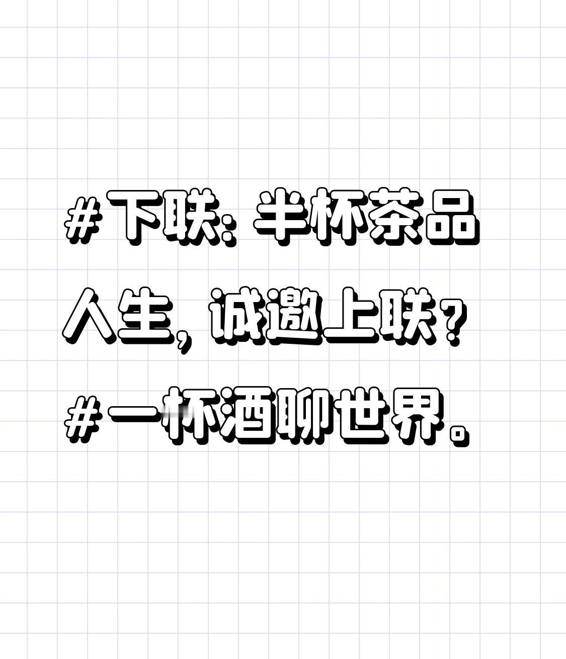 下联:半杯茶品人生,诚邀上联?一杯酒聊世界。