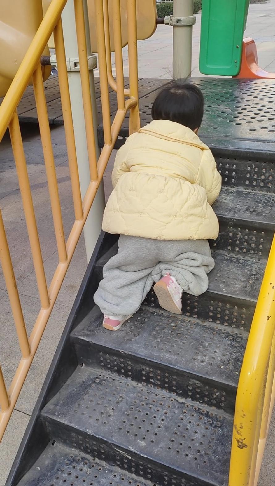 大冷天的我穿着厚外套都冻得直哆嗦,娃倒好,非要出来滑滑梯,拉都拉不住。看她穿个小棉袄,撅着屁股吭哧吭哧往滑梯台阶上爬,小腿倒腾得可快了,完全无视旁边冻得搓手的我。小孩的世界是真不懂啊,寒风里的滑梯在她眼里跟宝贝似的,玩得不亦乐乎,我只能在旁边当“人形挡风墙”,主打一个陪玩,咱就是说,这娃的抗冻能力比我强一百倍!