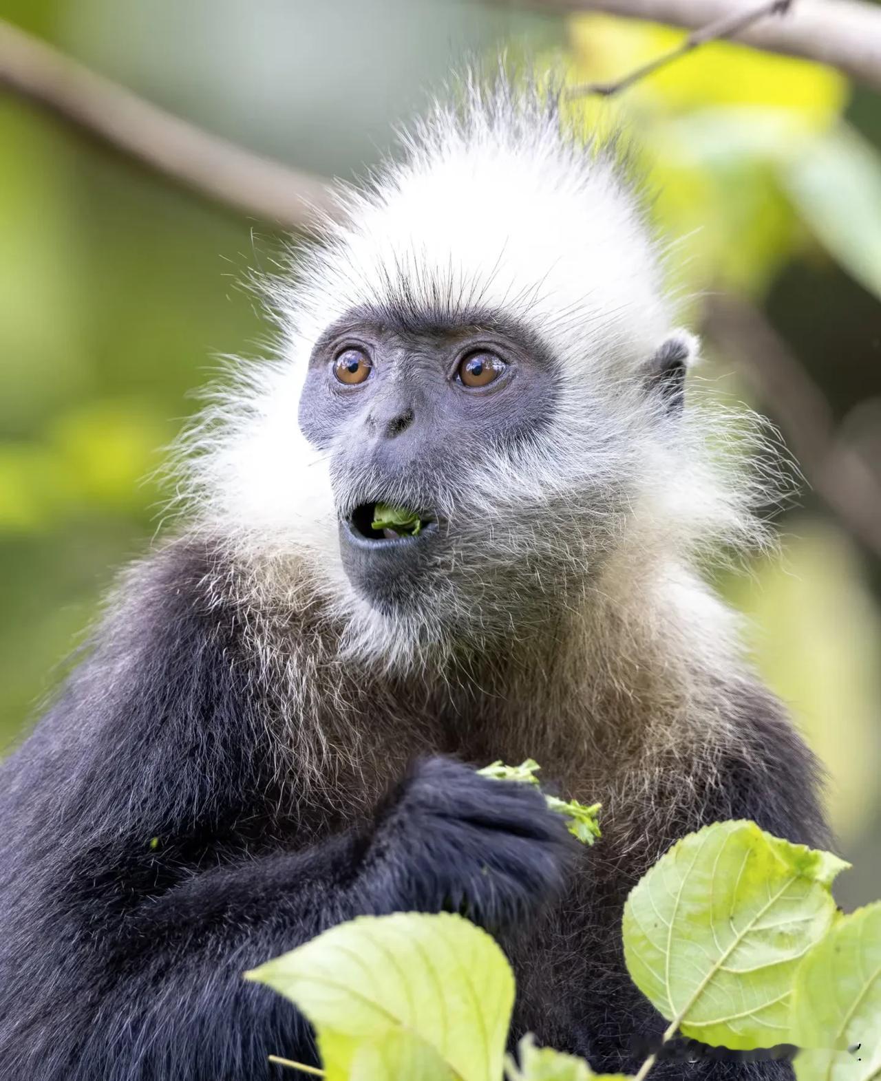 白头叶猴是中国崇左市的特有,属于国家重点保护动物,因白头发黑身体闻名天下!