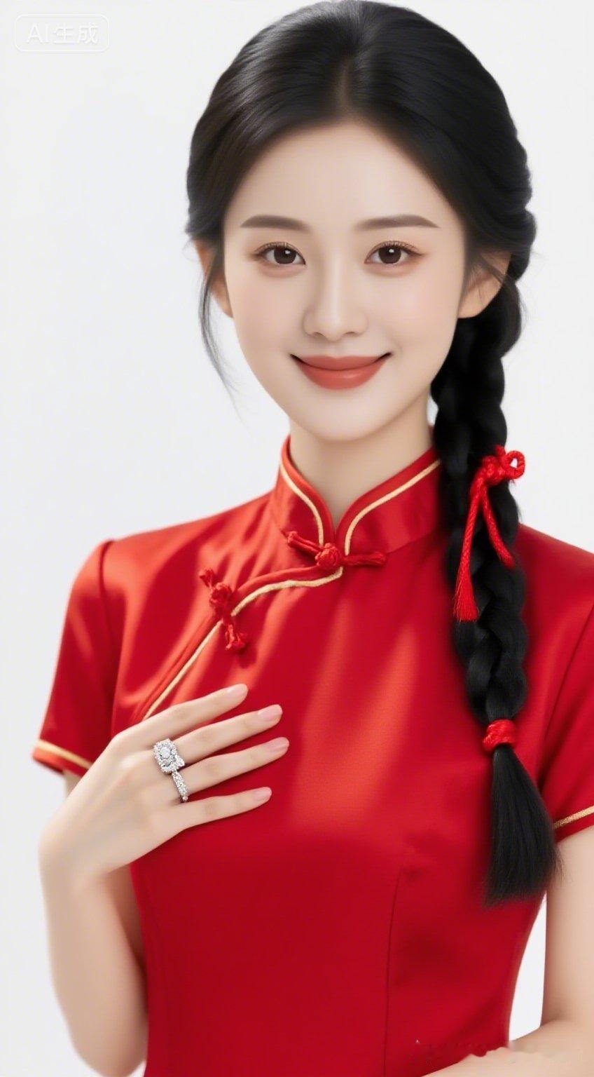 优雅旗袍少女,红衣惊艳,微笑动人!🌸💍✨