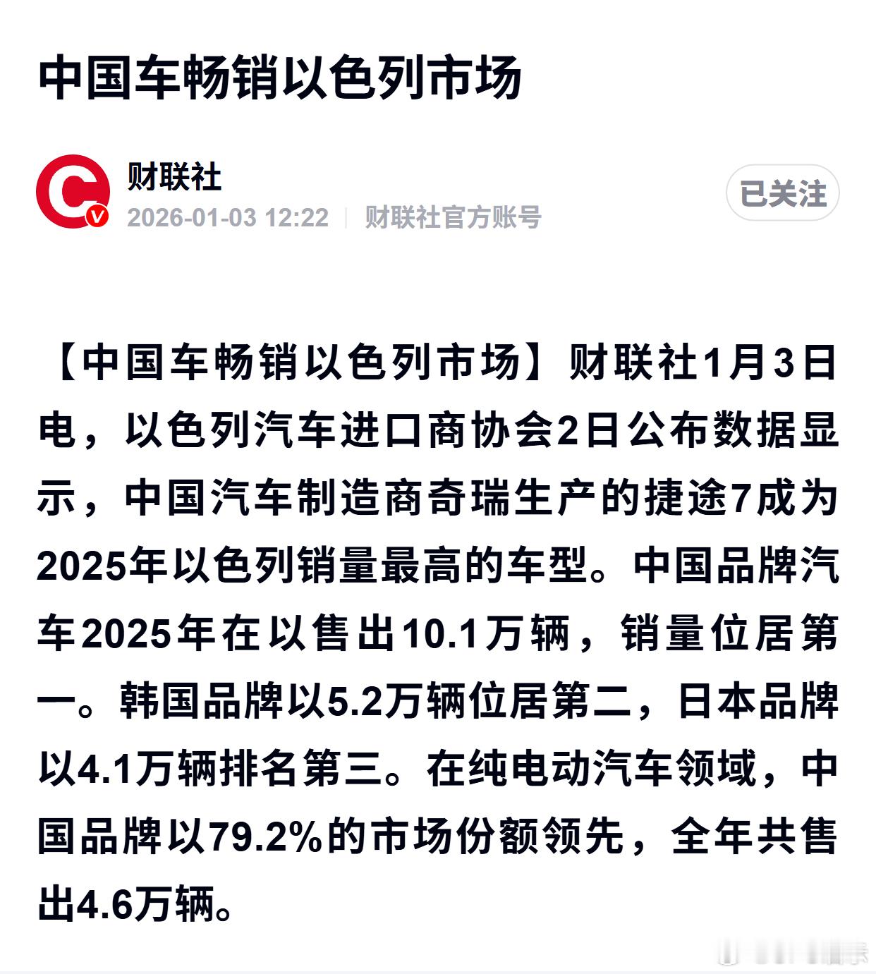 中国车畅销以色列市场