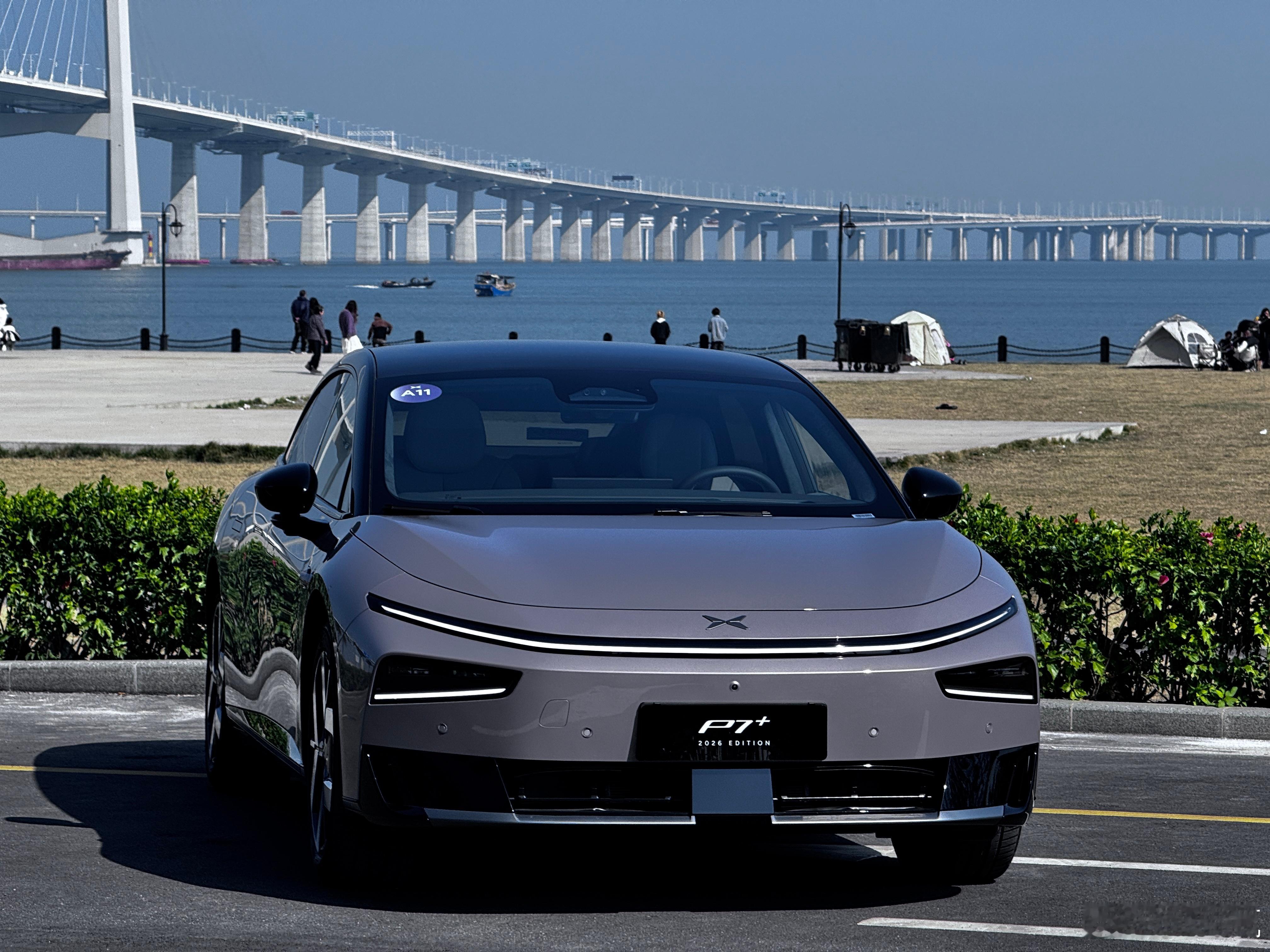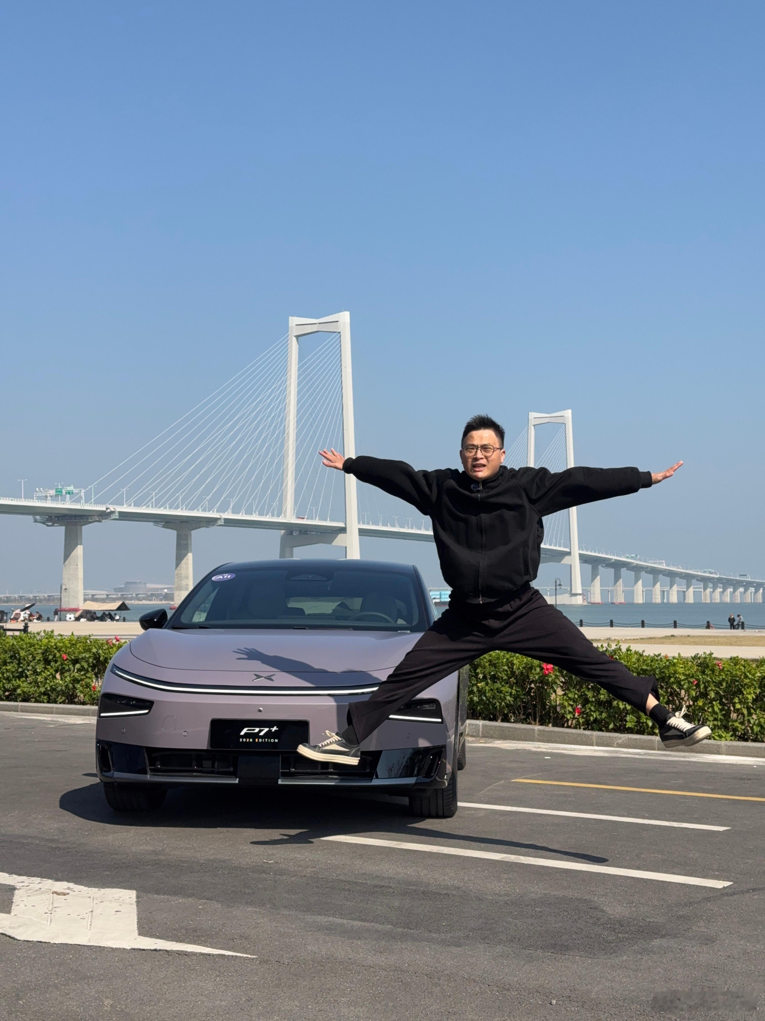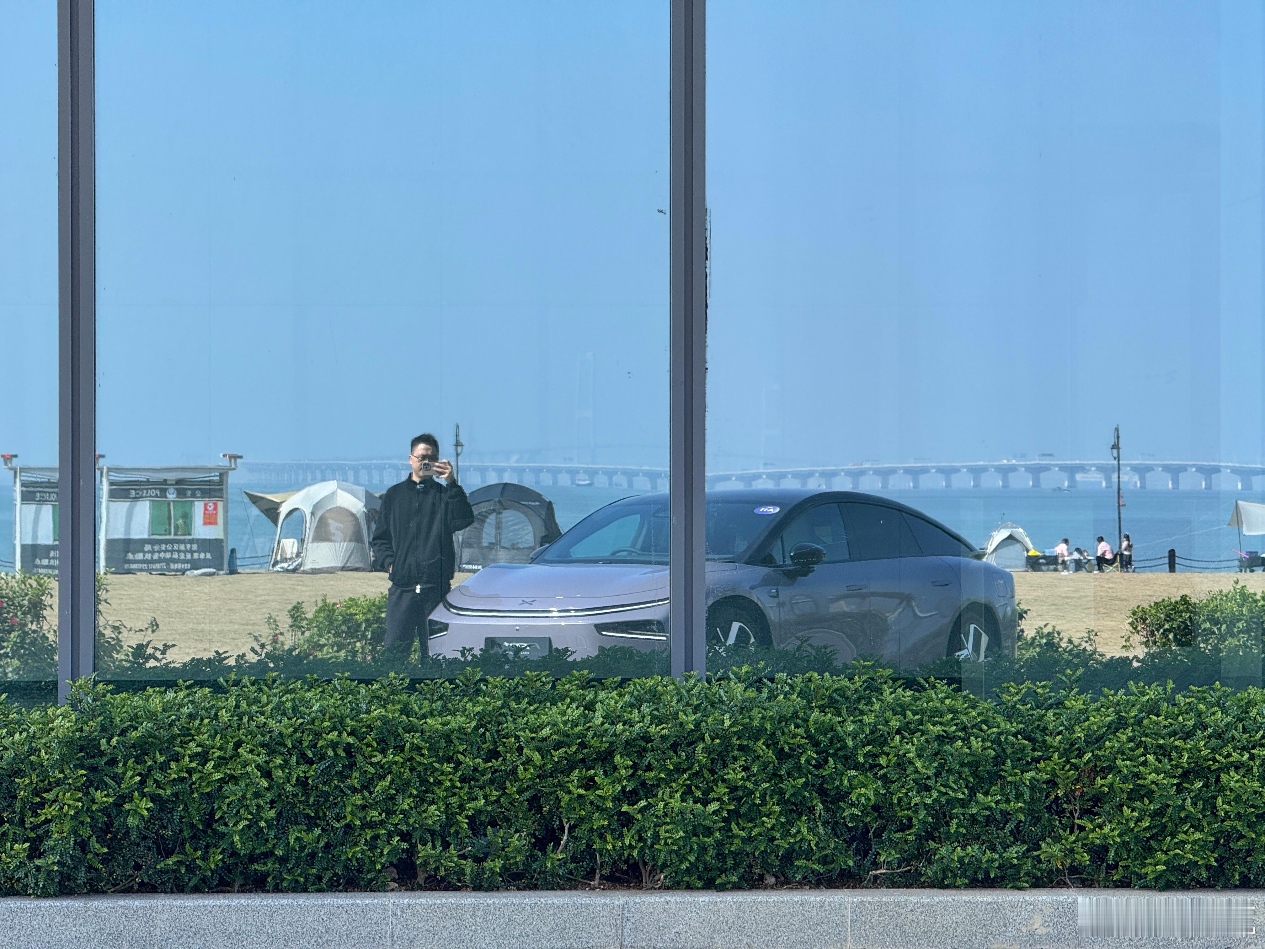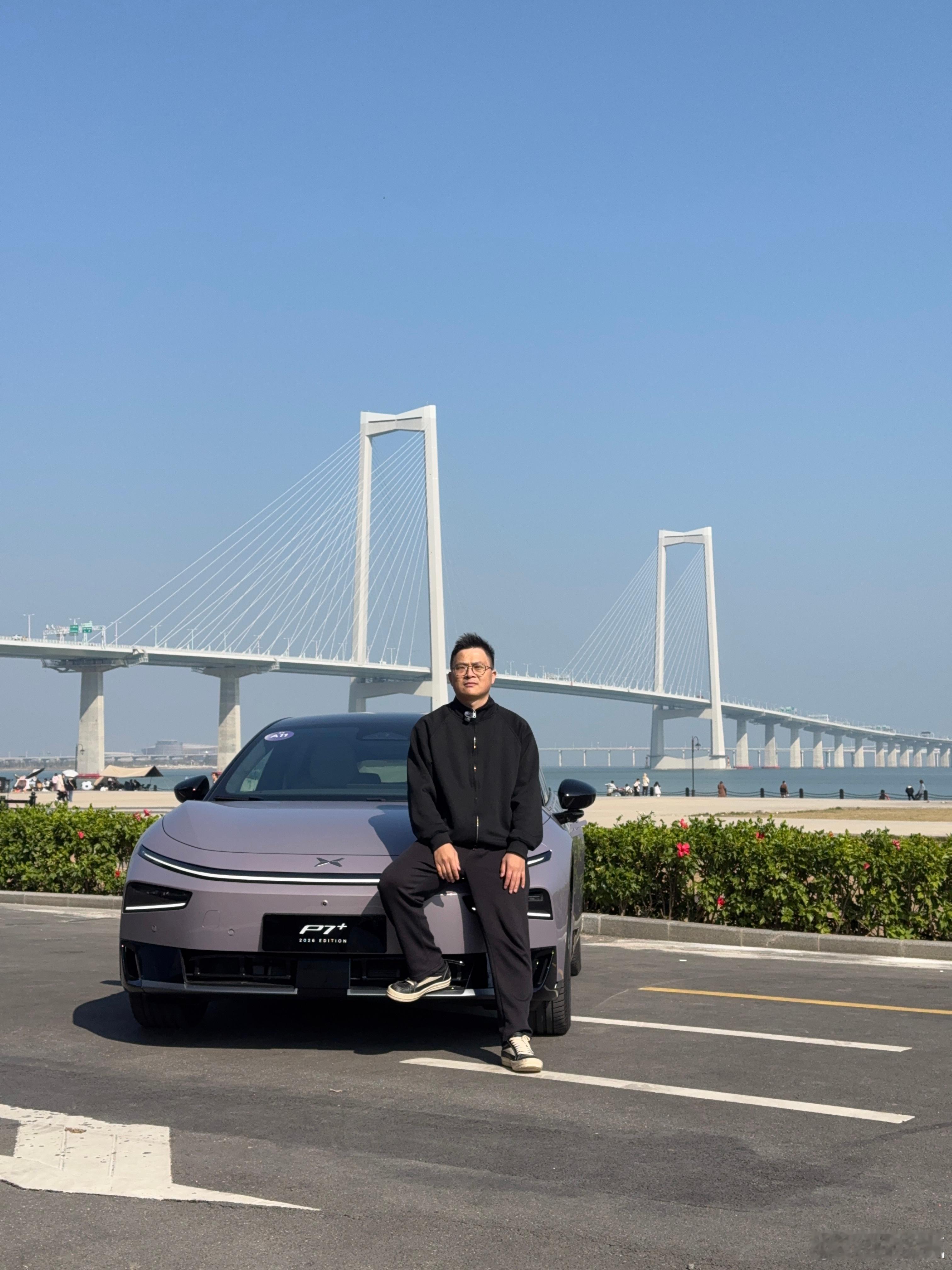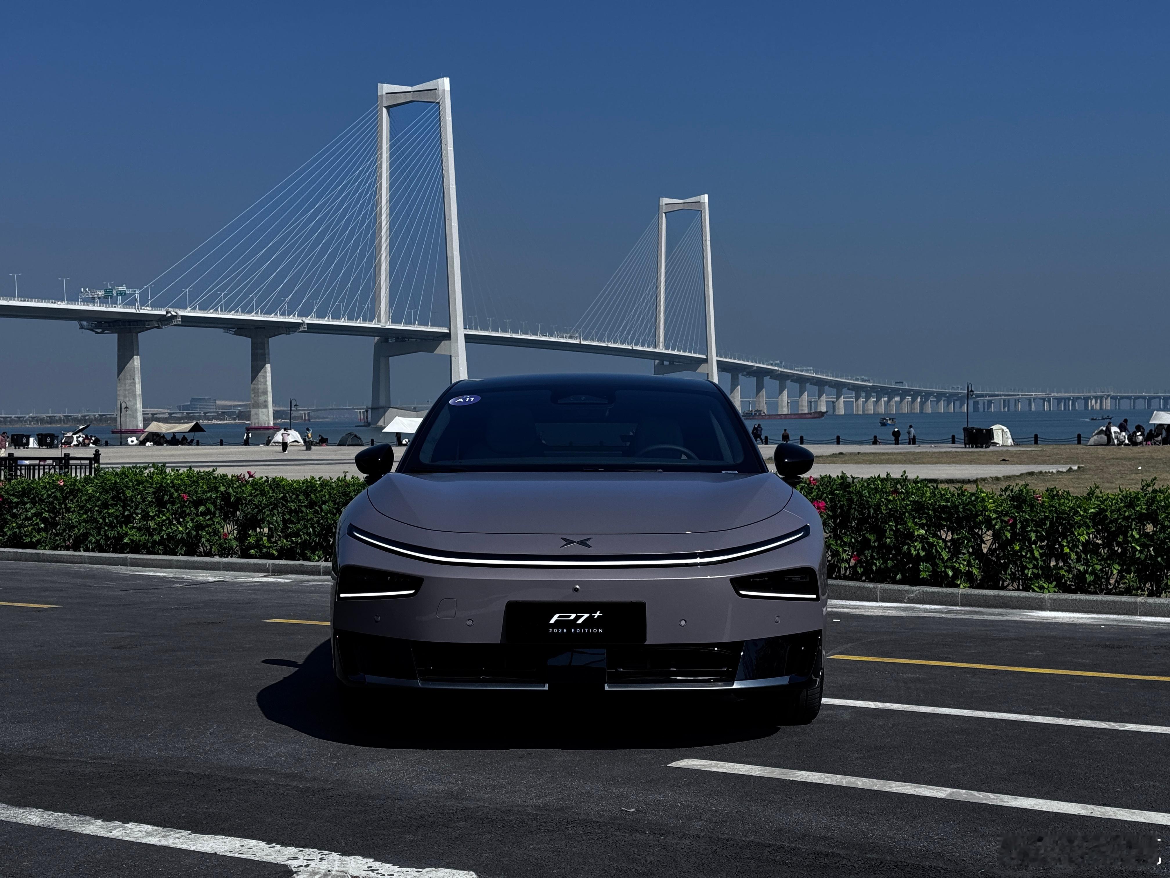 人,车、桥大合照。今天天气真不错,自拍拍出了人生照片。新款变成了无断点一体式日行灯,强迫症患者表示舒服了。尾部的线条也进行了调整,整体风格更加简约利落。20寸大轮毂性能爱好者狂喜。海边人流来来往往,很多人都围观,小鹏在广东地区的品牌力还是很棒的新款小鹏p7+即将全球36国发布 中山·湾区未来科技城