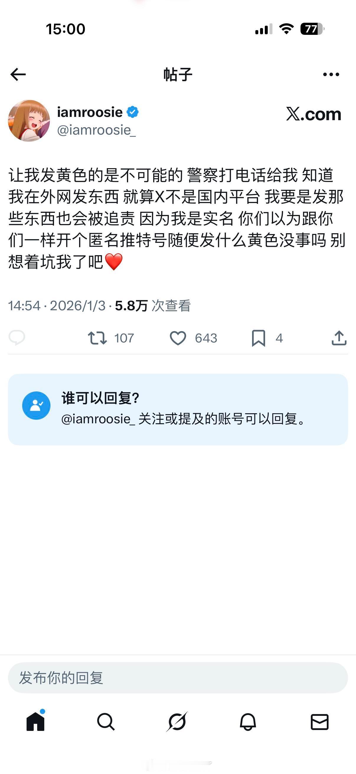 iamrooise这姐跑去推特了。太彪悍了……其实我看不太懂