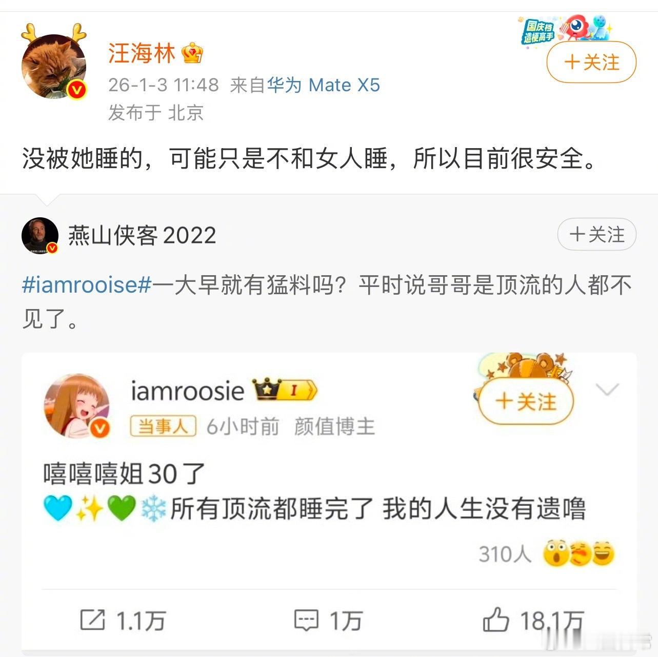 我有点理解顶流粉丝了,汪海林说话确实太粗俗了,甚至让人不适。不过粉丝应该无视他,