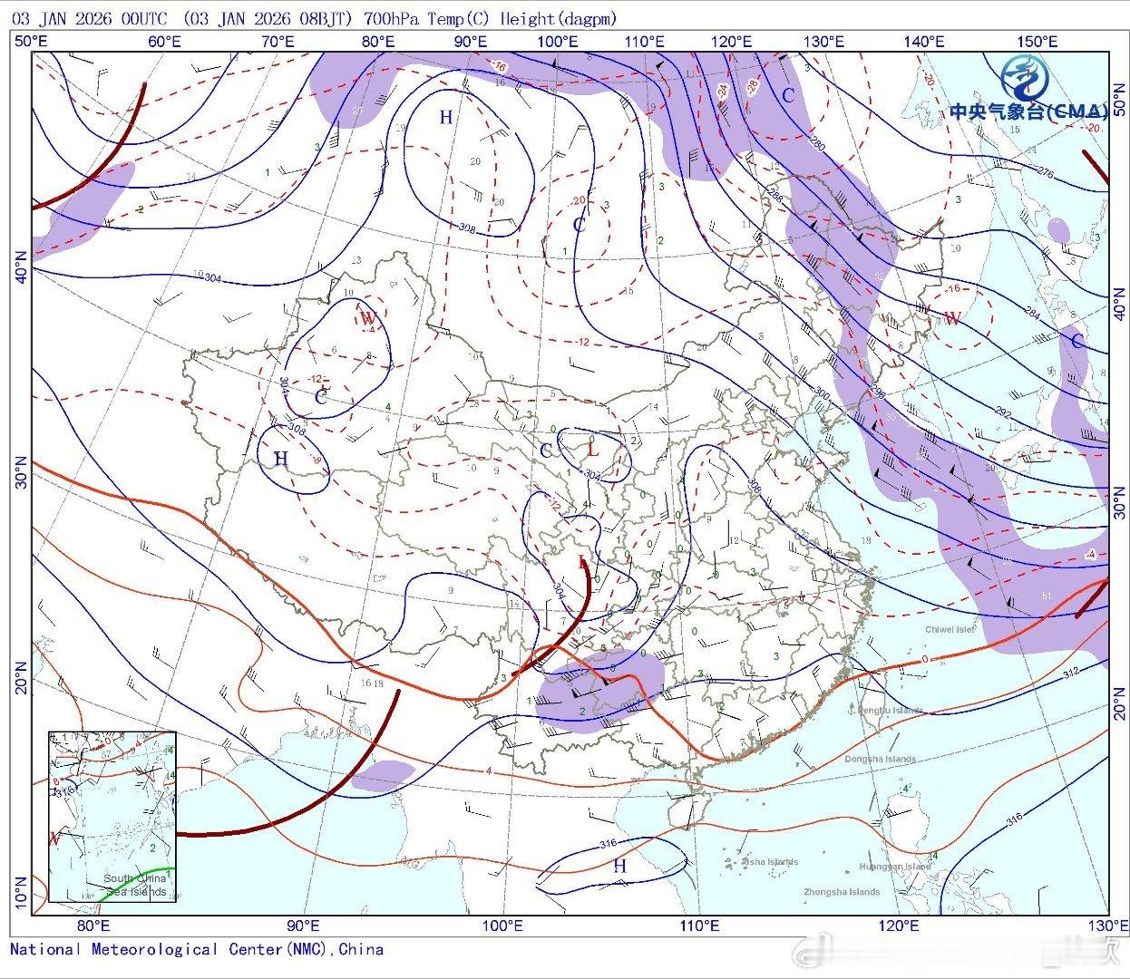 【降水】今天08-14时,降水从西南地区向东向北扩展。云南贵州等地出现降雨,甘肃南部和东部、陕西南部出现降雪。西安/咸阳机场和西安泾河站,14时均已经观测到降雪。从今天实测的700百帕形势看,南支槽前西南风较强,输送水汽,对应云图上大片降水云系。未来系统东移,河南西部和山西南部也有望出现降雪。