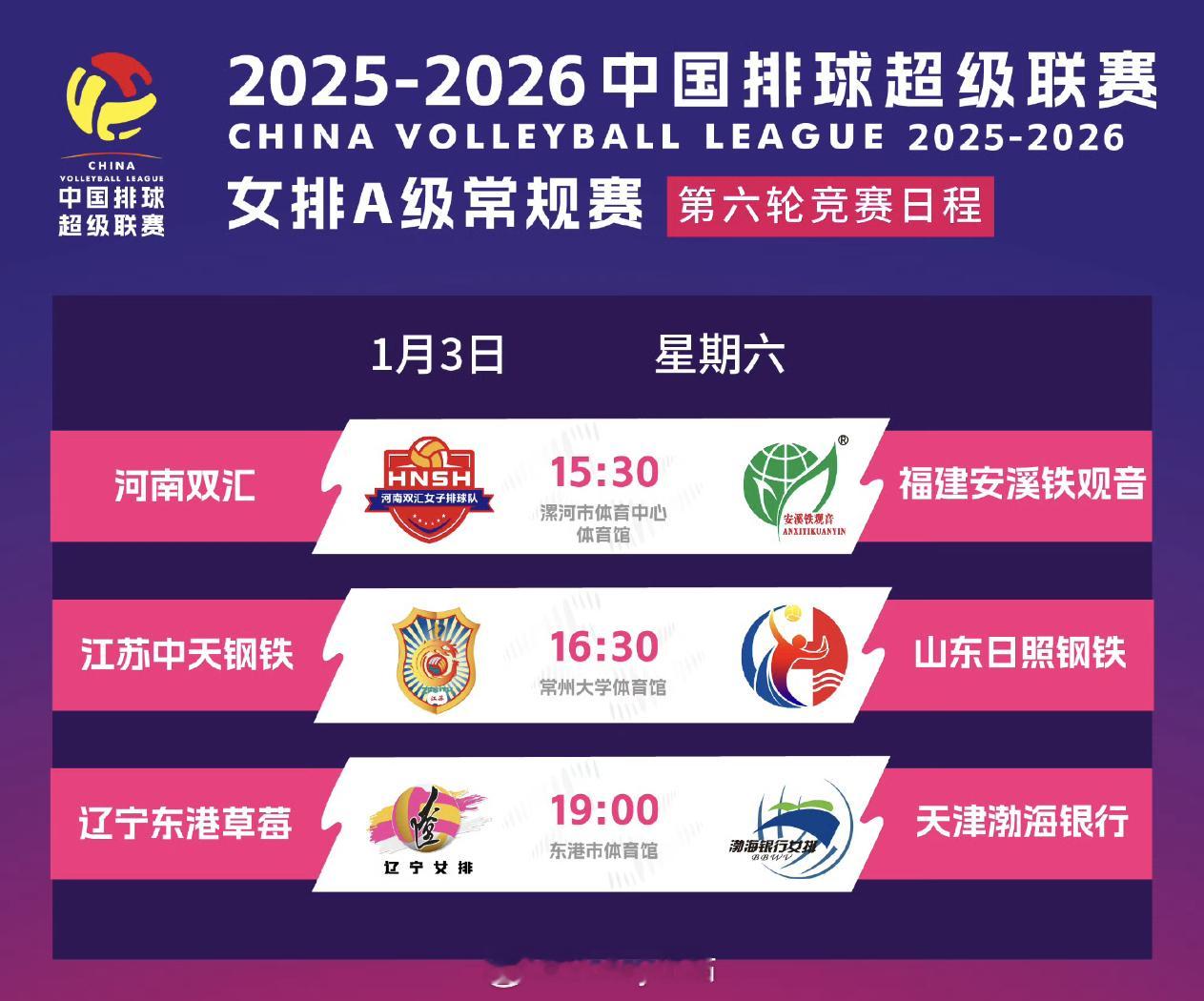 2025-2026赛季中国女子排球超级联赛A级第六轮和B级第七轮将在今天举行排超联赛2025-2026中国排球超级联赛