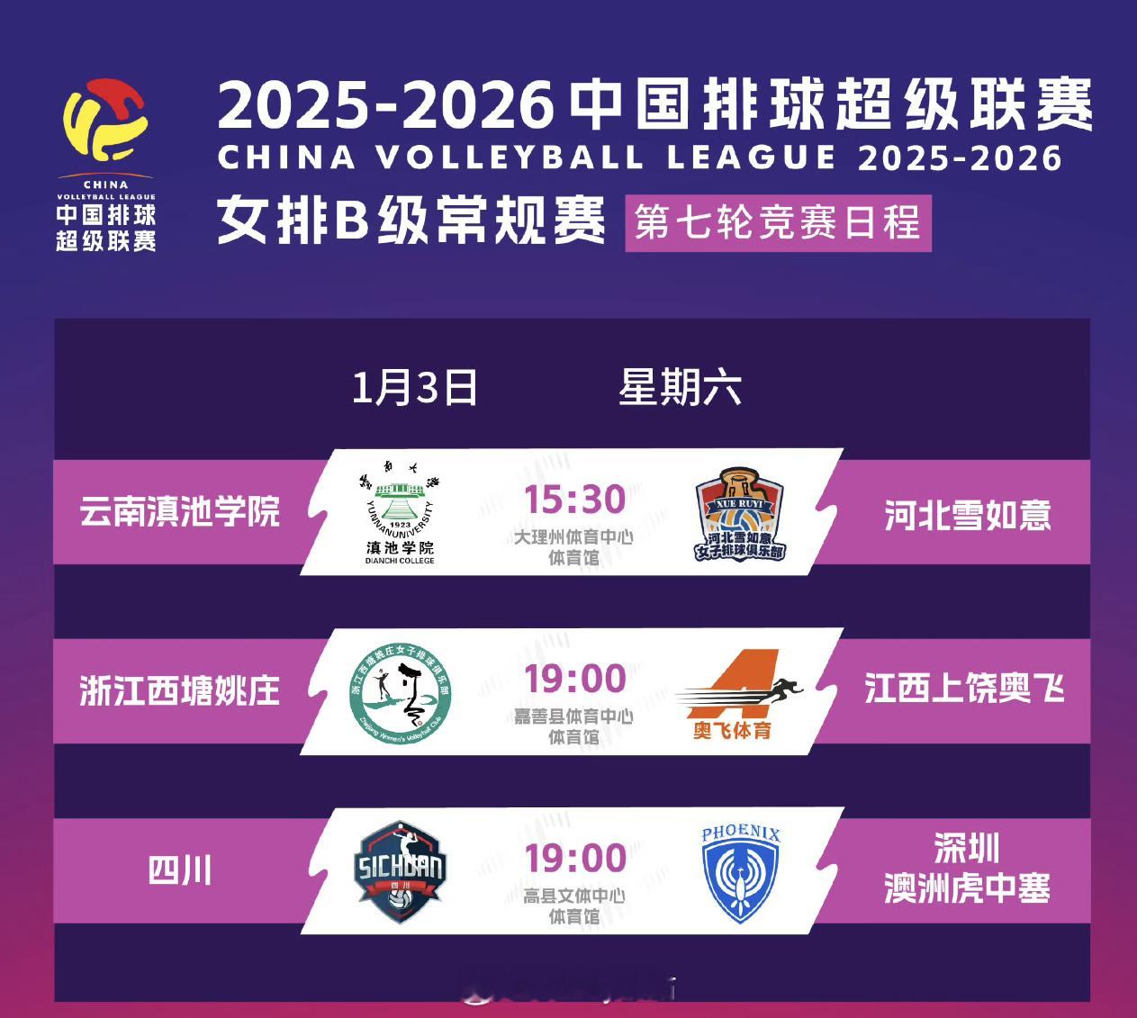 2025-2026赛季中国女子排球超级联赛A级第六轮和B级第七轮将在今天举行排超