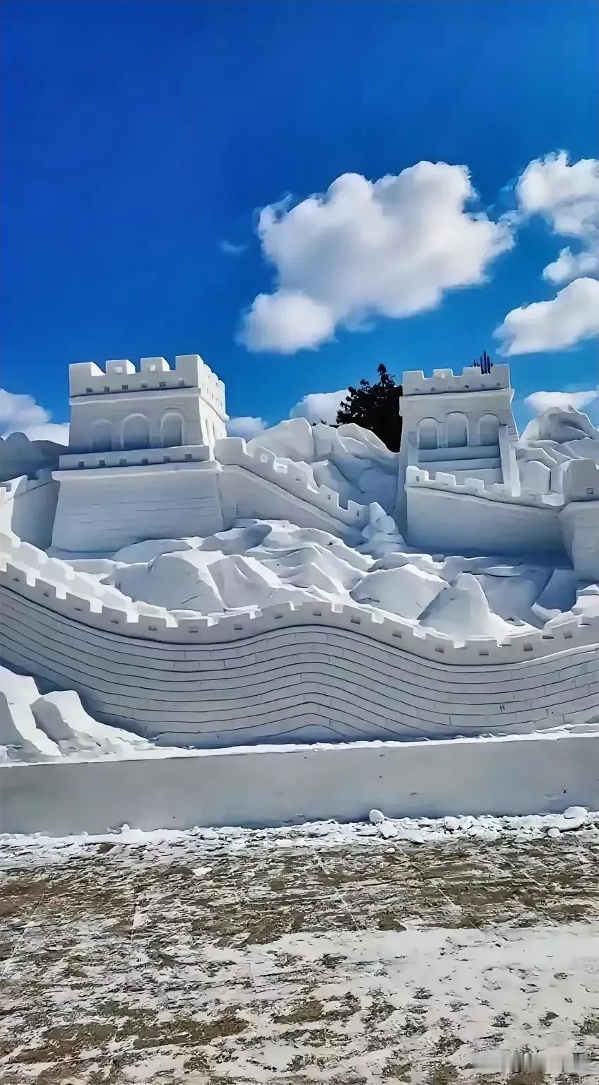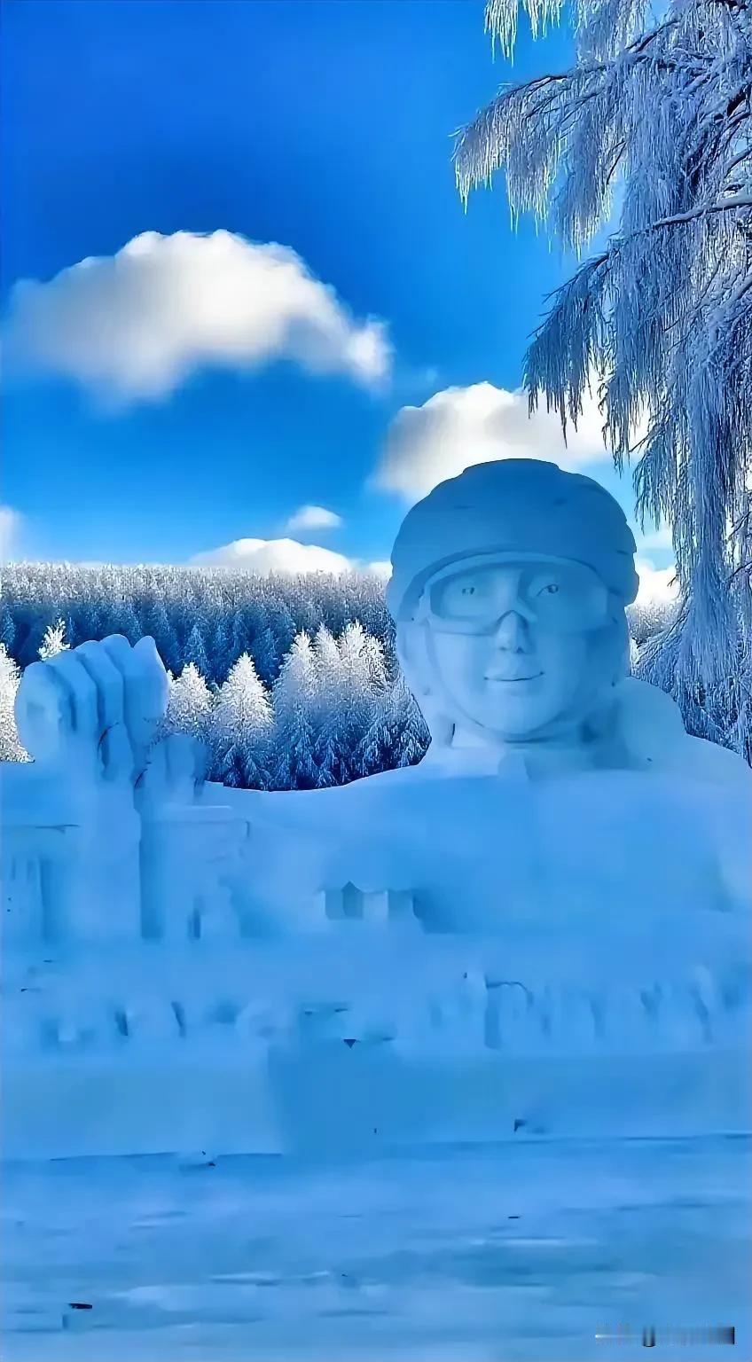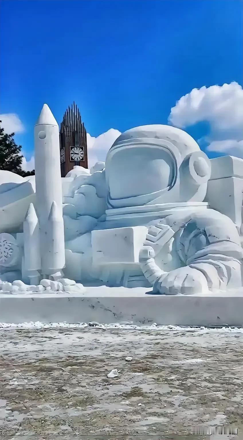 冰雪奇缘:宇航员与火箭的梦幻雪雕。