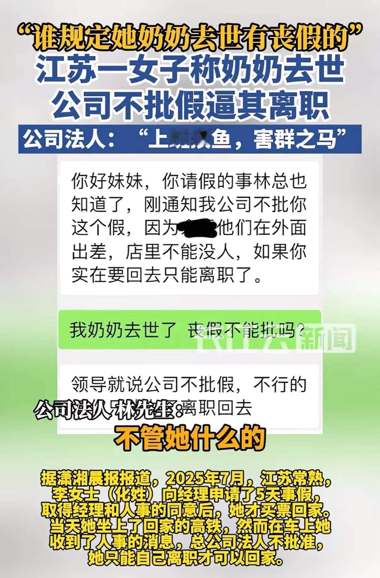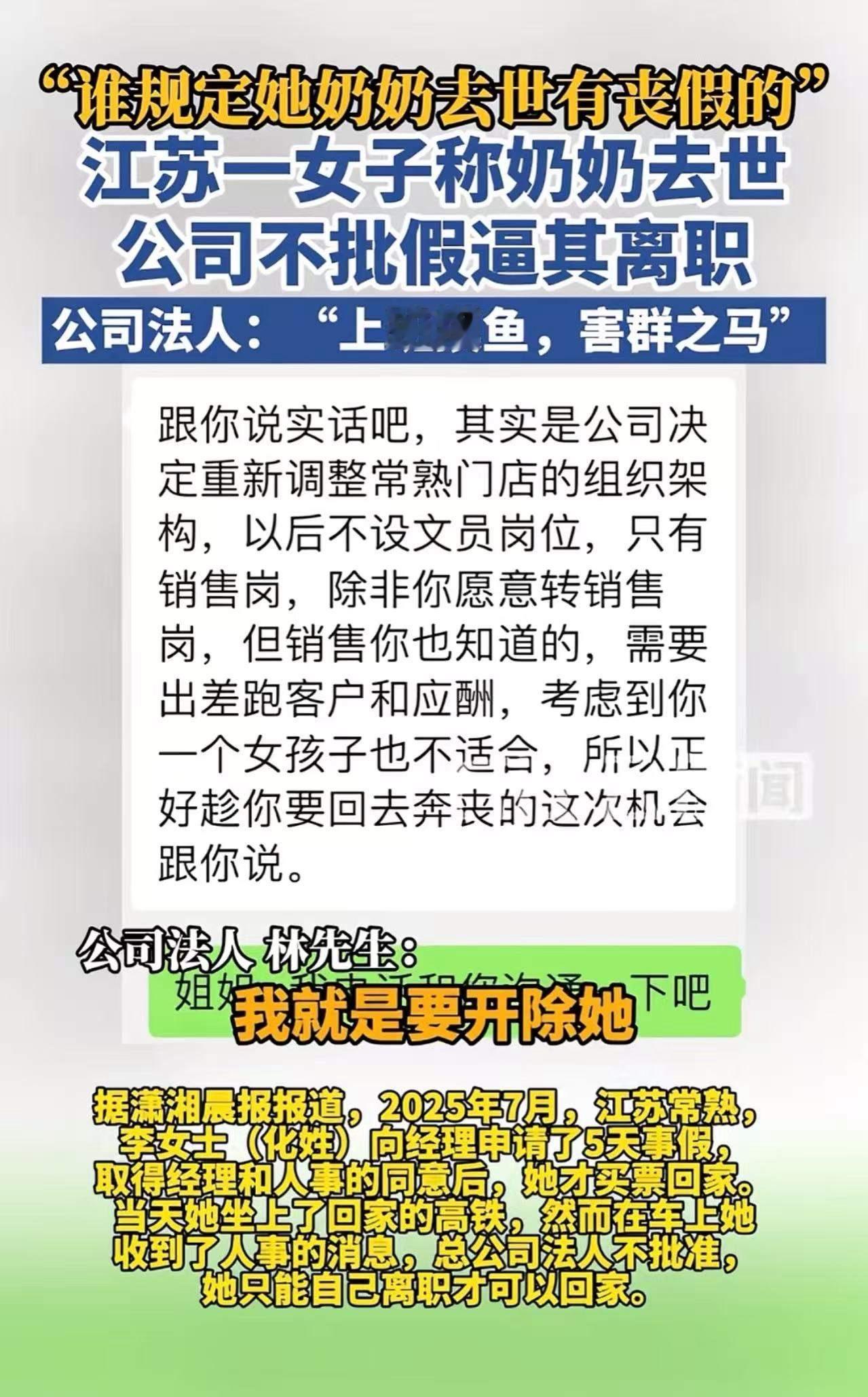 这是一则令人愤怒又深思的新闻:江苏一名女子的奶奶突然去世,本应是家庭的悲痛时刻,却因为公司老板的一句话,让她陷入了前所未有的尴尬与无助。“谁规定她奶奶去世必须请丧假?”老板的冷漠与无情,仿佛在告诉我们:在某些职场里,所谓的“人情味”早已被利益和冷漠取代。 然而,事情的背后,却隐藏着更深层次的人性拷问。我们是否在无形中,将“责任”与“孝道”变成了负担?当一个人面对亲人离世的悲痛,是否还应被公司“硬性”绑架?老板的那句“谁家爷爷奶奶不去世,这有什么好请假的”看似一句玩笑,却刺痛了无数人的心。它折射出一些职场文化中对人性、对情感的漠视,也让我们不得不反思:现代社会,我们是否还在真正尊重每个人的家庭责任和情感需求? 这件事激起了网友们的愤怒,也引发了热烈的讨论。有的人说:“孝道不能用工作来衡量,更不能用金钱来衡量。”有人质问:“难道在这个社会里,家庭的痛苦就成了可有可无的借口?”还有人感叹:“公司如此冷漠,员工的生命和家庭在他们眼里,竟然如此渺小。”这背后,是我们对“责任”和“人性”的重新审视。 其实,每个人都曾在家庭与工作的夹缝中挣扎。我们都希望在亲人离去时,能有一份理解和尊重,而不是被无情的制度绑架。这个事件让我们看到:在追求效率和利益的同时,更应守护人性中最柔软的那一部分。孝顺不是一句空话,而是我们对父母、对长辈最真诚的回馈。 更令人心碎的是,这位女子的遭遇并非个案。许多职场中的“冷漠”现象,折射出的是社会对家庭、对情感的忽视。我们需要的是一种温暖的改变,让每个人都能在工作中找到尊重与理解,在家庭中找到归属感与幸福感。 这起事件,像一面镜子,映照出我们这个时代的价值观。它提醒我们:孝道不是一句口号,而是每个人心中的信仰。我们要让“孝顺”成为一种自然而然的行动,而不是被制度绑架的负担。只有这样,社会才能变得更加温暖,家庭才能更加和谐。 你怎么看待这件事?你是否也曾在职场中感受到类似的冷漠?欢迎留言,让我们一起为改变发声,让孝顺不再是一句空话,而是一种温暖人心的力量!婆婆去世