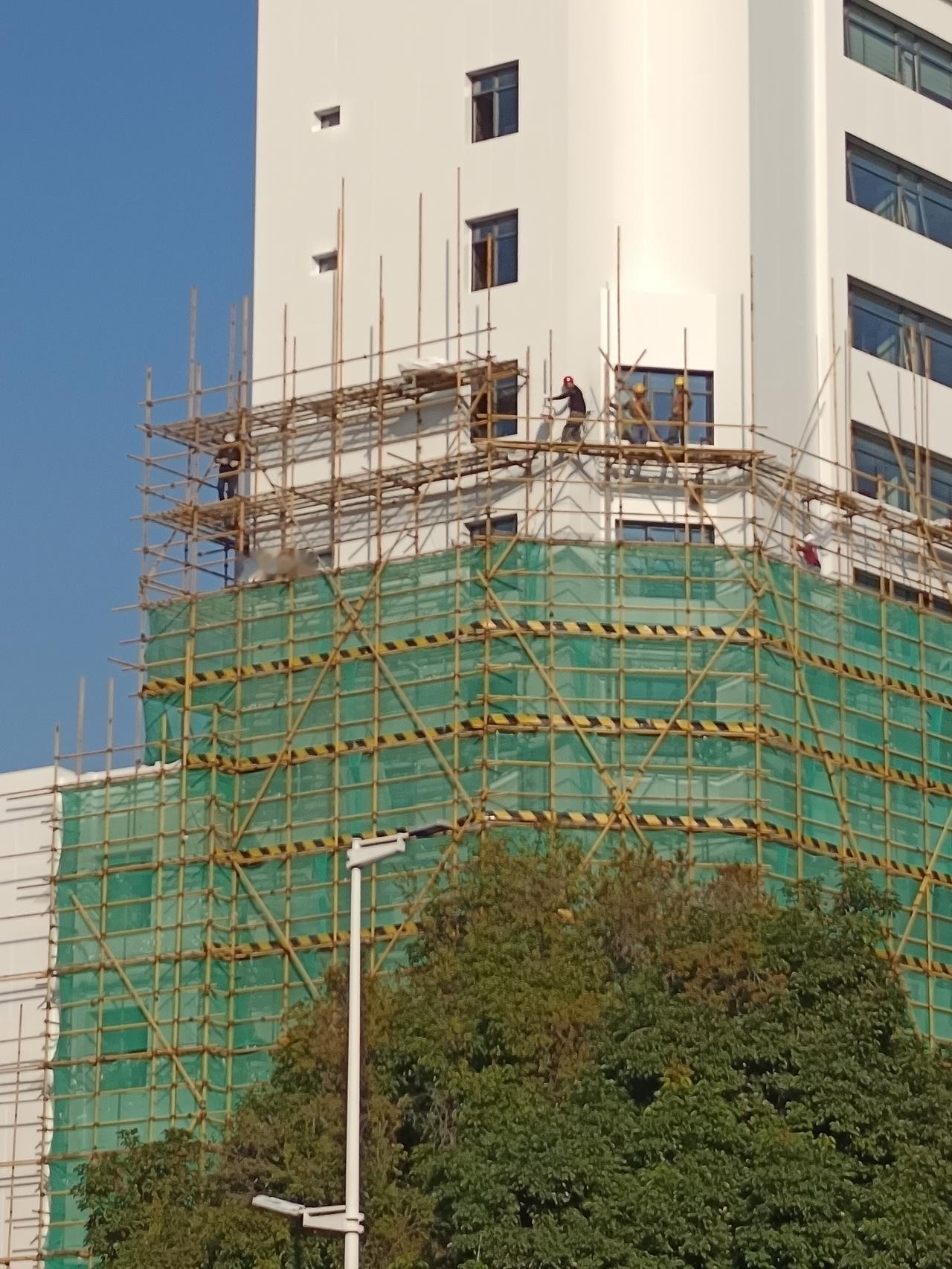 有一件事 我不知道怎么说才好 我发现了一个很严重的问题 你敢相信吗?建设银行外场维护 工人们在外墙上面工作 有些竟然没有带护绳? 隔得太远,有些看不清楚 有些好像真没带 看样子还有二三十楼高 如果掉下来,真的不敢想象后果 为什么他们的工程师能允许人不带?