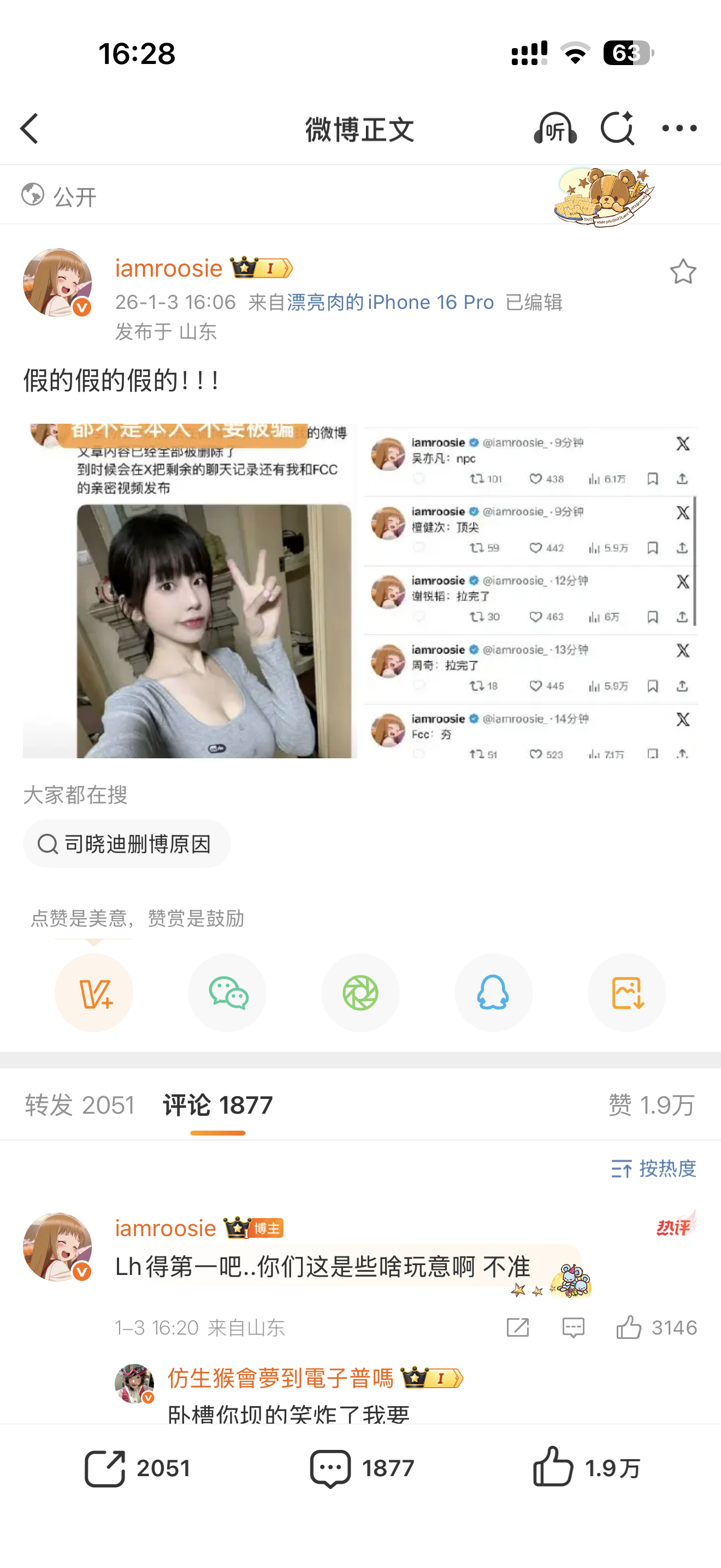 司晓迪转战推特并表示:手里有视频但没发出去过