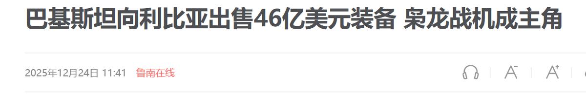 中国不想面对的一幕还是来了!2025年12月24日报道,“巴铁”又做出一项军售方面举动。动作频频,外界一片震惊。 巴基斯坦同我国的往来一直都是国际关注的焦点之一,尤其是两国之间的军事合作。巴基斯坦在一些核心装备上面高度依赖我国,一些技术均来自于我国。 就在今年5月份,同印度爆发的军事冲突中。巴基斯坦就是驾驶我国的战机,击毁了印度的多架战机,获得了空战的胜利。 在这场空战的加持下,我国同巴基斯坦的关系应更进一步的发展。但就在最近这段时间,我国同巴基斯坦的关系却因为多方的影响,而出现了一些微妙的变化。 就在2025年12月21日的时候,根据外媒报道,巴基斯坦购买的护卫级第二艘凯伯尔号交付。这是土耳其同巴基斯坦的一项军事合作,就在这则消息带来的热度还未平息时。 2025年12月24日的时候,据媒体报道,巴基斯坦向利比亚出售46亿美元装备,其中枭龙战机更是成为主角。这是巴基斯坦国防出口史上最大规模的交易之一,所以引发了国际社会的关注。 巴基斯坦这一举动对我国也有一定的影响,在文章开头就已经提到,巴基斯坦在一些核心装备上高度依赖我国,而巴基斯坦向其他国家军售的行为,很有可能会导致我国的部分核心装备出口到其他国家。 当然除了这一影响之外,还有多处的影响。但总体对我国来说,这件事情有弊也有利。那么您认为利大于弊,还是弊大于利呢?欢迎评论区留言您的看法。 (信息来源:PNS Khaibar Commissioned: Pakistan Navy’s Babur-Class Corvette Reshapes Maritime Deterrence in the Indian Ocean-DEFENCE SECURITY ASIA) (信息来源:巴基斯坦向利比亚出售46亿美元装备 枭龙战机成主角-鲁南在线)