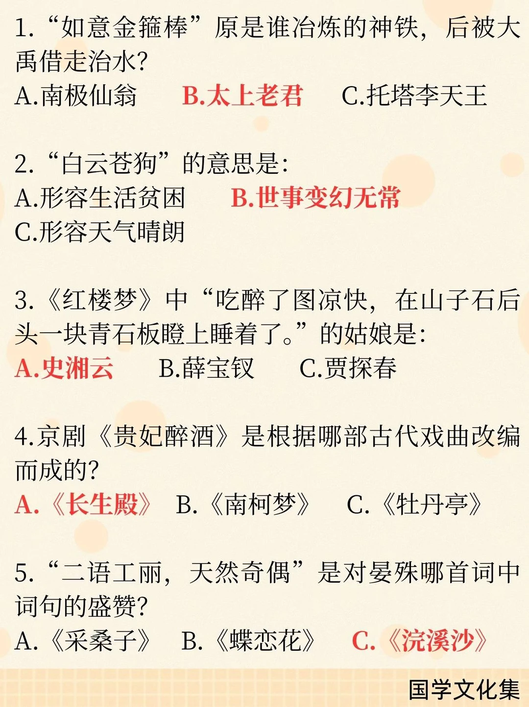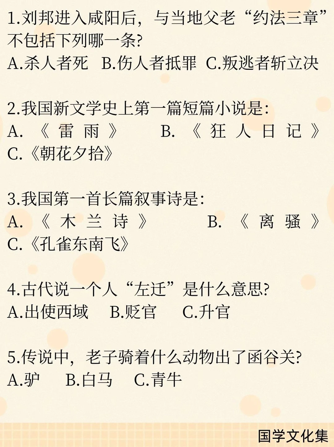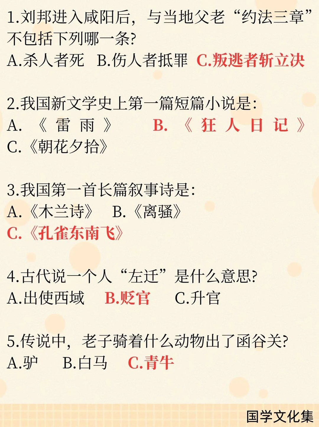 文化素养积累 文化常识 每日一题 了解中国传统文化 中国文化博大精深 中国上下五千年文化 语文知识点
