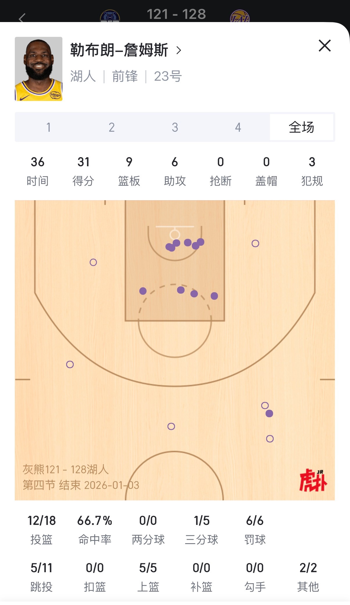 如何评价本场比赛詹姆斯的表现?出场36分钟拿下31分9篮板6助攻!灰熊vs湖人湖