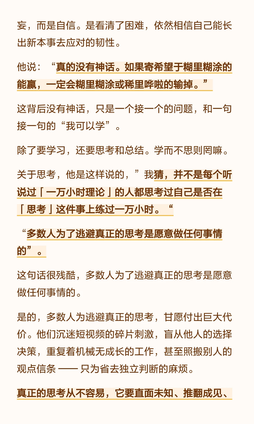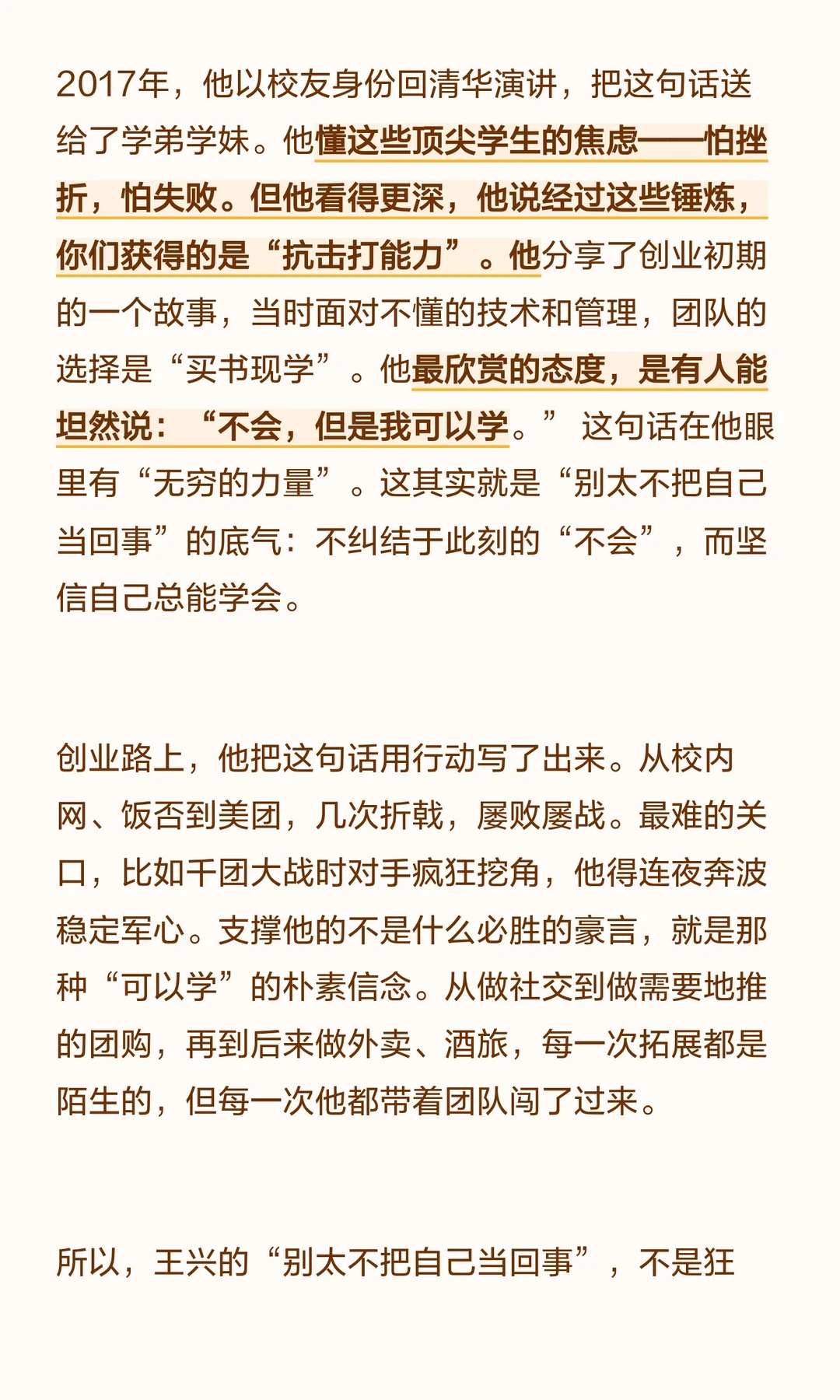 王兴的“别太不把自己当回事”源于清华的挫折与创业的历练,强调面对未知时的自信与学习能力。 他通过不断尝试和团队努力,展现了面对困难时的韧性与成长。 真正的思考虽难,却能让人看清本质,独立思考也是可以学习的。