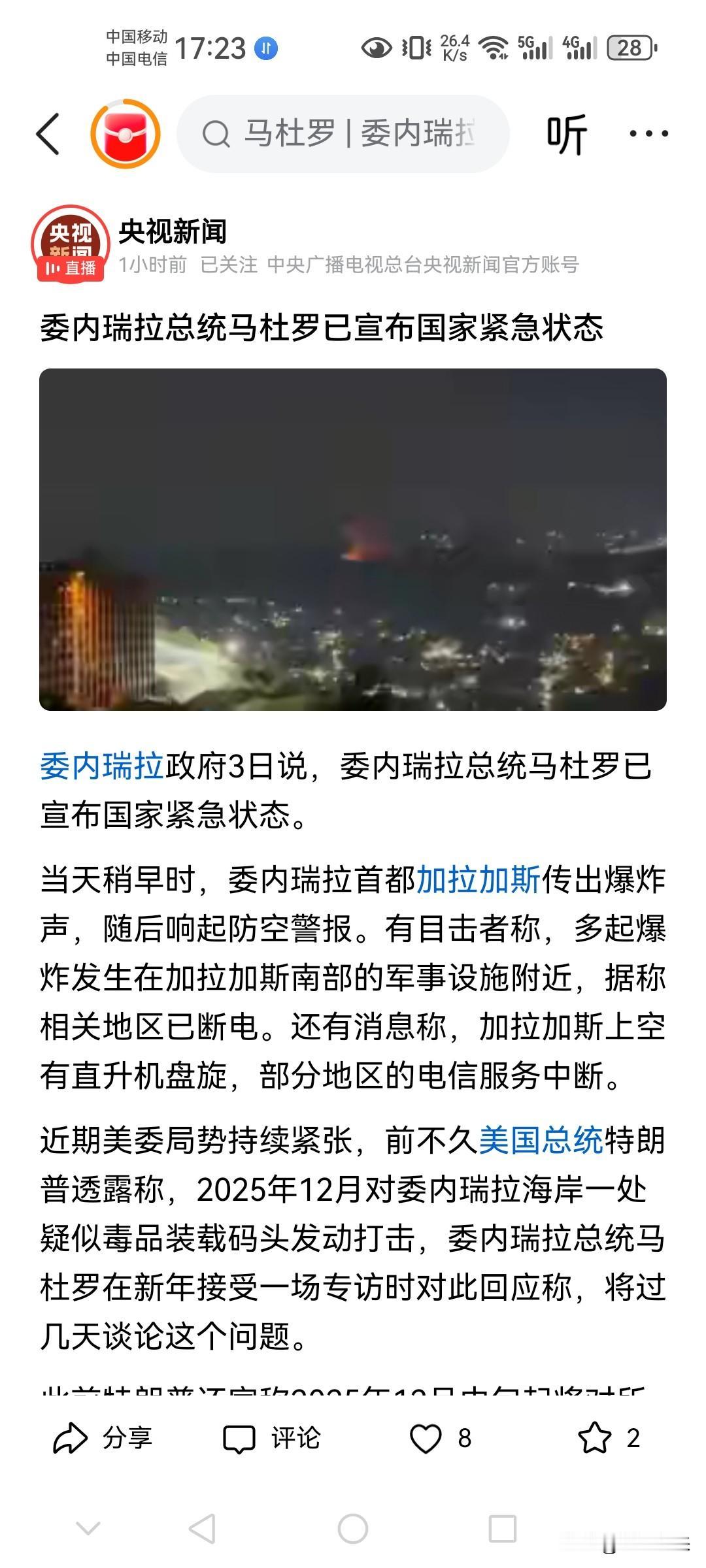 马杜罗也不是吃素的!立马针对特朗普的轰炸行为做出回击! 美国总统特朗普既然撕破脸了,下令轰炸委内瑞拉首都附近的军事设施,那马杜罗就宣布委内瑞拉紧急状态! 一旦委内瑞拉国家进入紧急状态,那就意味着全民皆兵,政府开放军队仓库,每个委内瑞拉人民将会拿起武器,来抵抗美国接下来的进一步军事行动! 马杜罗不会让特朗普轻易得逞,也会让美国付出惨痛代价!毕竟马杜罗统治委内瑞拉这么多年,民心所向!虽然军事上不如美国,但是美国军队进入委内瑞拉国土,也必将遭到强烈反击!目前的行动只是在空中和海上,毕竟美国有绝对的制空权和制海权!马杜罗