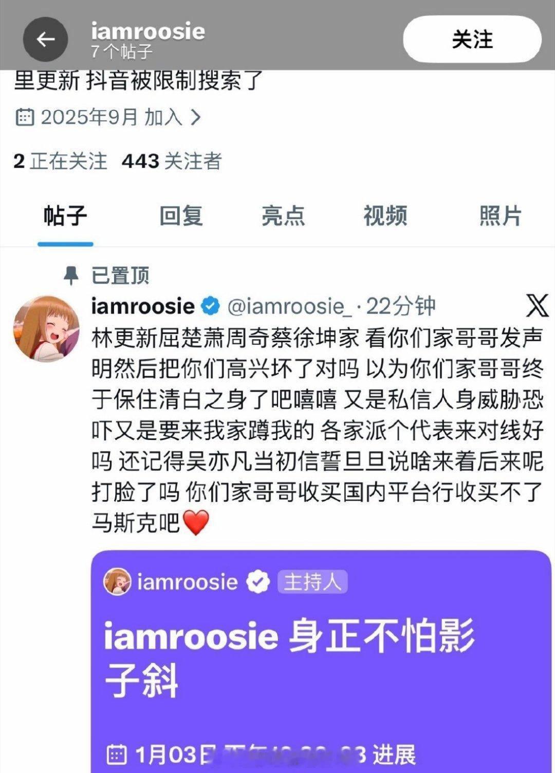 我不行了 司晓迪跑去支持马斯克了iamroosie