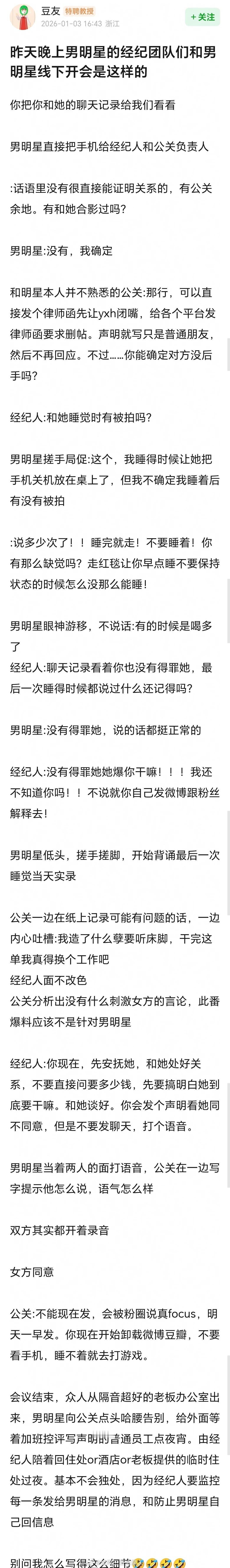 疑似业内公关猜测的昨天司晓迪发文后的艺人团队开会内容,但素“男明星对着公关点头哈腰告别”这句话真的不觉得很离谱吗🙃iamroosie