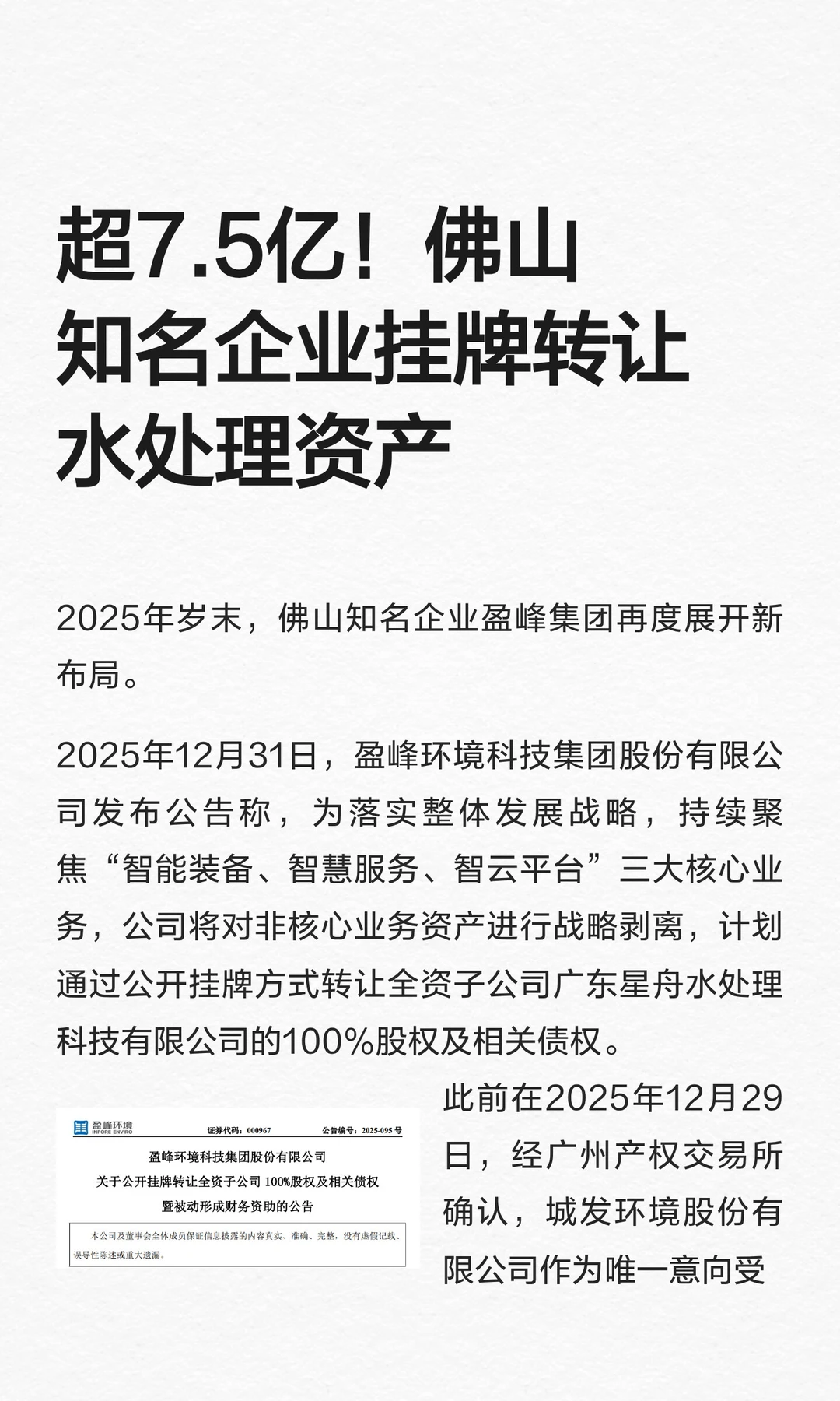 7.5亿!佛山知名企业挂牌转让水处理资产