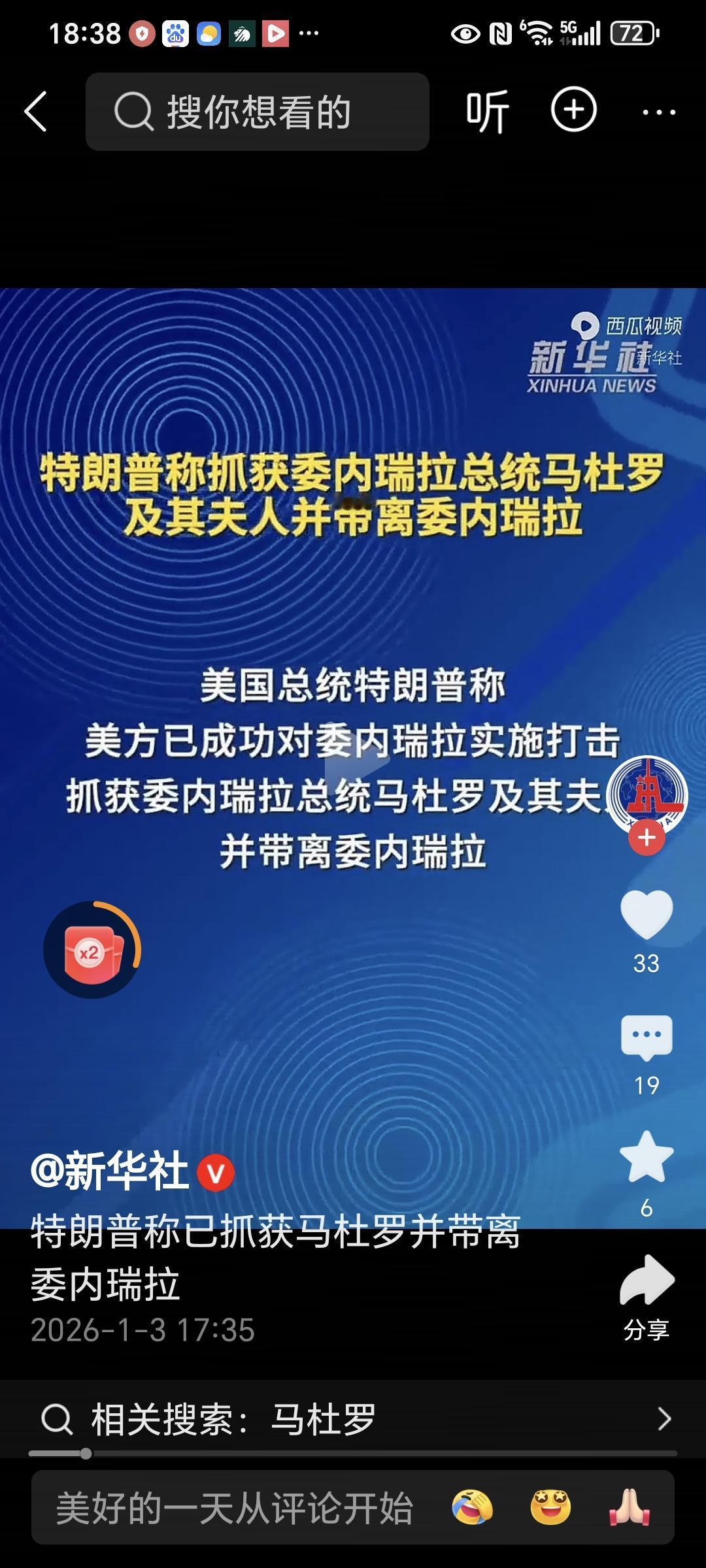 特朗普称抓获委内瑞拉总统马杜罗及其夫人并带离委内瑞拉, 美国务卿鲁比奥:马杜罗已被逮捕,将在美国接受刑事审判 逮捕马杜罗行动由美军三角洲特种部队执行 委内瑞拉政府3日发表官方公告,强烈谴责美国现政府对委内瑞拉领土和人民实施“极其严重的军事侵略”,并宣布在全国范围内实施国家紧急状态。消息来源,央视新闻。 网友,“三角洲部队跨国抓人,这不是电影《敢死队》,这是现实版的强权逻辑!无视《联合国宪章》直闯首都,美国这是把‘霸权’二字写在脸上了。委内瑞拉宣布全国紧急状态,局势恐怕才刚刚开始失控,这把火会烧到什么程度?”美打委的事实说明:一是加强国防与军事实力,一切以拳头说话,口呼正义是没用的;二是必须加强和巩固内部团结,同仇敌忾;三是必须重视解决民生问题,倾听民众心声,切实为人民服务。